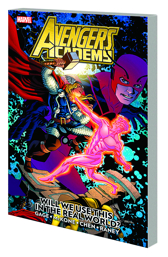 The return of Giant-Man - and Korvac! Academy headmaster Hank Pym once more embraces his classic identity of Giant-Man - but can he bring his former wife, the original Wasp, back from the dead? Meanwhile, when Academy students Hazmat, Veil and Striker discover an Internet video of super villain the Hood torturing their instructor Tigra, will their shocking act of vengeance get them all expelled? And when Michael Korvac - the insanely powerful adversary who once nearly killed the Avengers - makes his shocking comeback, not even they can subdue the powerful demigod! It's resurrections, returns and revenge as five troubled teenagers must face their futures and take on one of the greatest threats to ever face Earth's Mightiest Heroes! Collecting AVENGERS ACADEMY #7-13.