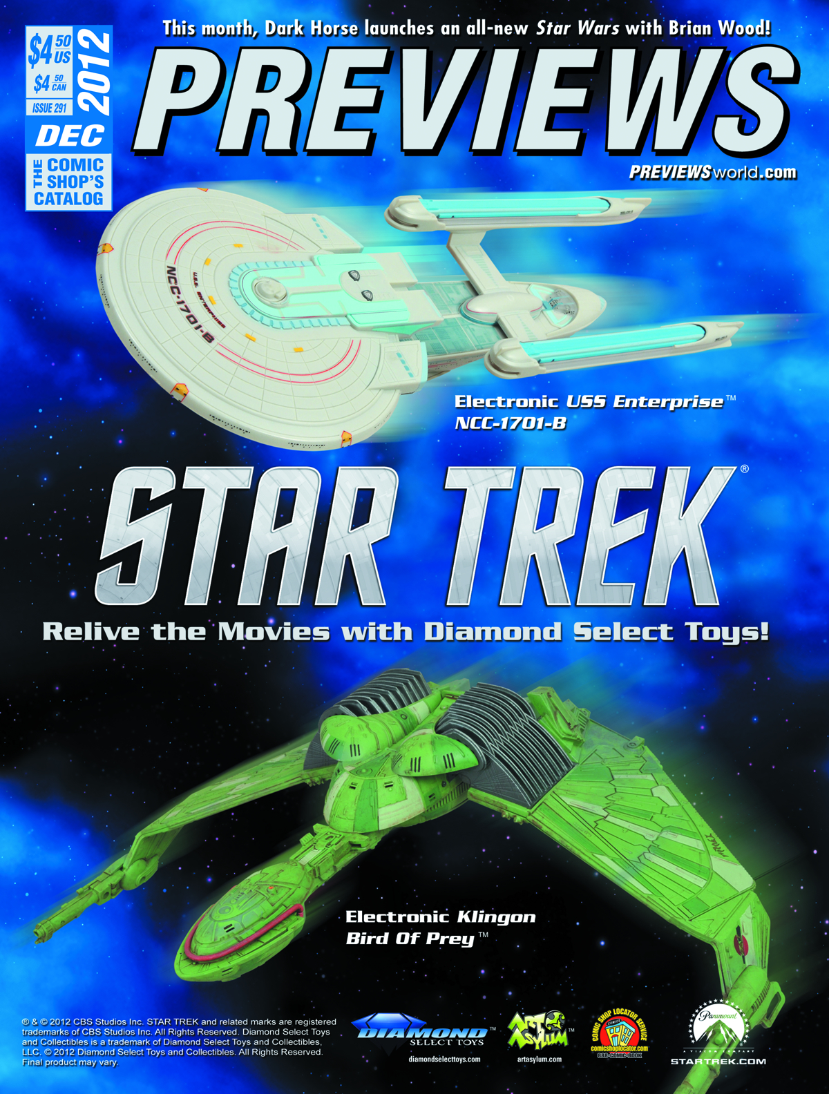 Since 1988, PREVIEWS has been your ultimate source for all of the comics and merchandise to be available from your local comic book shop... revealed up to two months in advance! Hundreds of comics and graphic novels from the best comic publishers; the coolest pop-culture merchandise on Earth; plus PREVIEWS exclusive items available nowhere else! Now more than ever, PREVIEWS is there to show the tales, toys and treasures in your future! This December issue features items scheduled to ship in February 2013 and beyond.