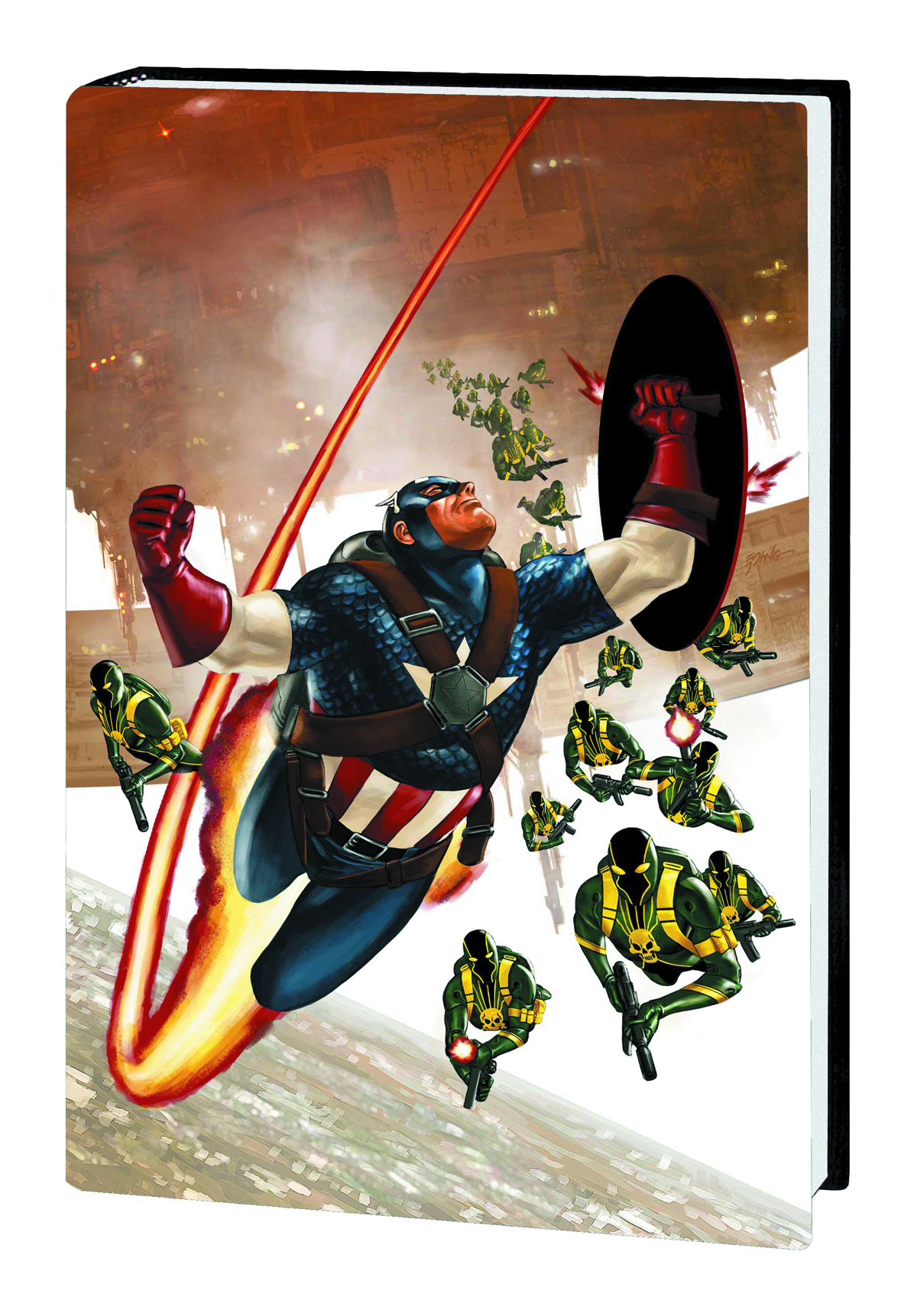 Still reeling from Hydra's Madbombs, Cap finds himself the target of a vicious media smear campaign. Who are the Discordians, and what will they blow up next? While Discordian cells attack American interests all worldwide, shock journalist Reed Braxton turns the public against the Sentinel of Liberty. And as riots beak out in the streets and society begins to crumble, the Omega-Madbombs are unleashed! Targeted for death, Cap tackles Codename: Bravo and Queen Hydra with the fate of the world in the balance! Meanwhile, Sharon Carter and Dum Dum Dugan duke it out with Baron Zemo - in the depths of space! It's the end of an era, brought to you by Eisner Award-winner Ed Brubaker and rising star Cullen Bunn! Collecting CAPTAIN AMERICA (2011) #15-19.