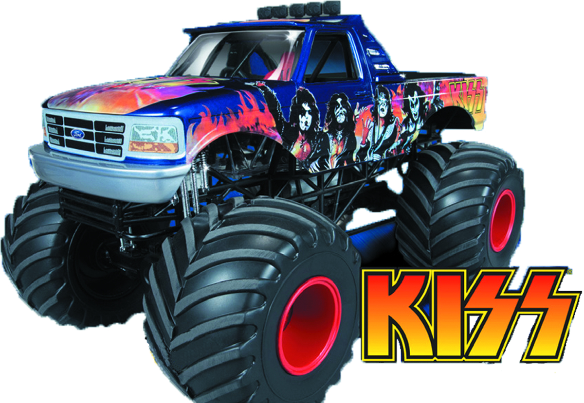 Kiss: Destroyer Monster Trust Model Kit, recreating the iconic Destroyer album cover on its sidebody! It's body is molded in blue, making it an ideal kit for beginners who don't want to paint large kit parts. Huge vinyl monster truck tires are included, as well as a highly-detailed tubular racing chassis. The 1/25-scale model comes with a full-color decal sheet and includes 2 textile parade flags for the pickup bed.