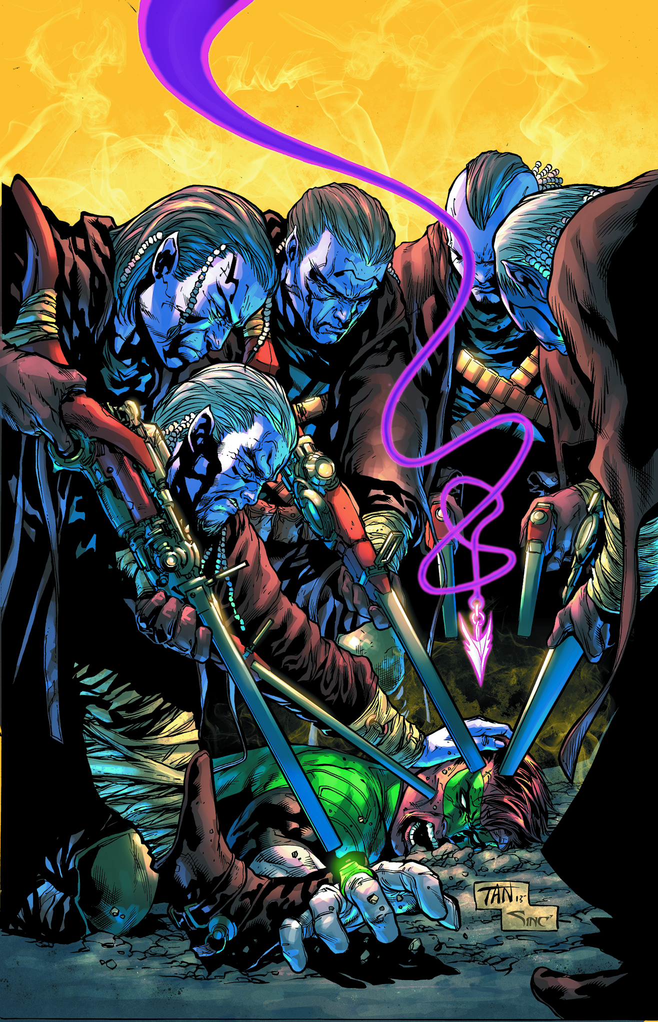 Still in disarray after the events of "LIGHTS OUT," Hal and Kilowog struggle to enforce the Corps' new directive against Star Sapphire Nol-Anj! Having revealed a command of the Violet light unlike any the Corps has encountered before, Hal makes an earth-shaking decision. Is his win-at-all-costs attitude exactly the kind of leadership the Corps needs, or is he walking them into their next trap?