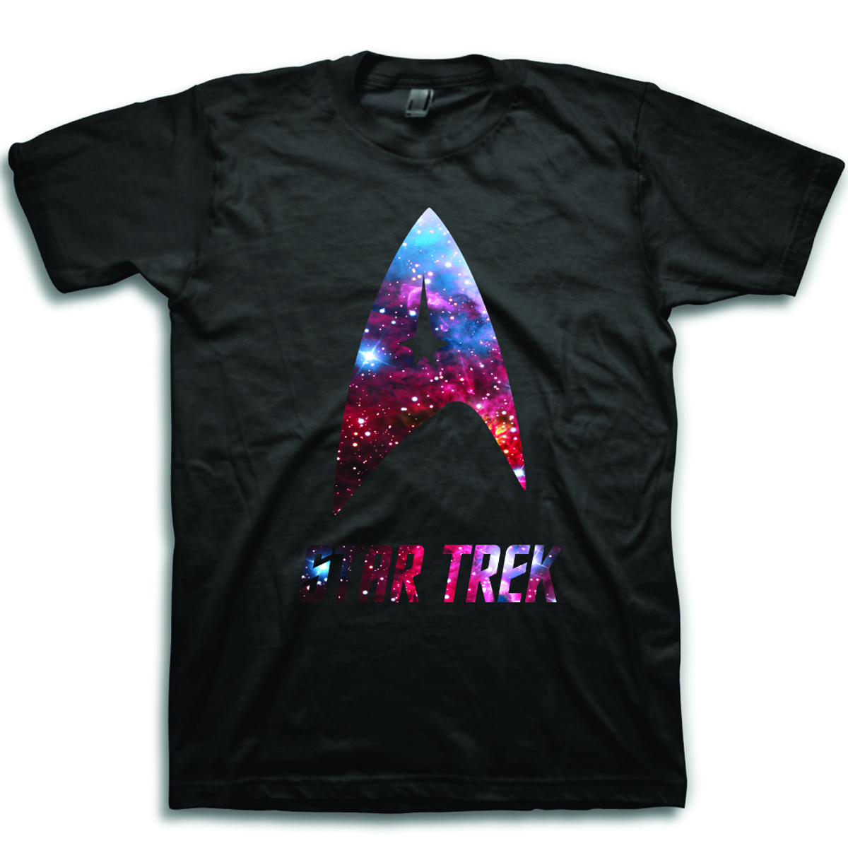 The Star Trek delta shield logo is cosmic on this black t-shirt!
