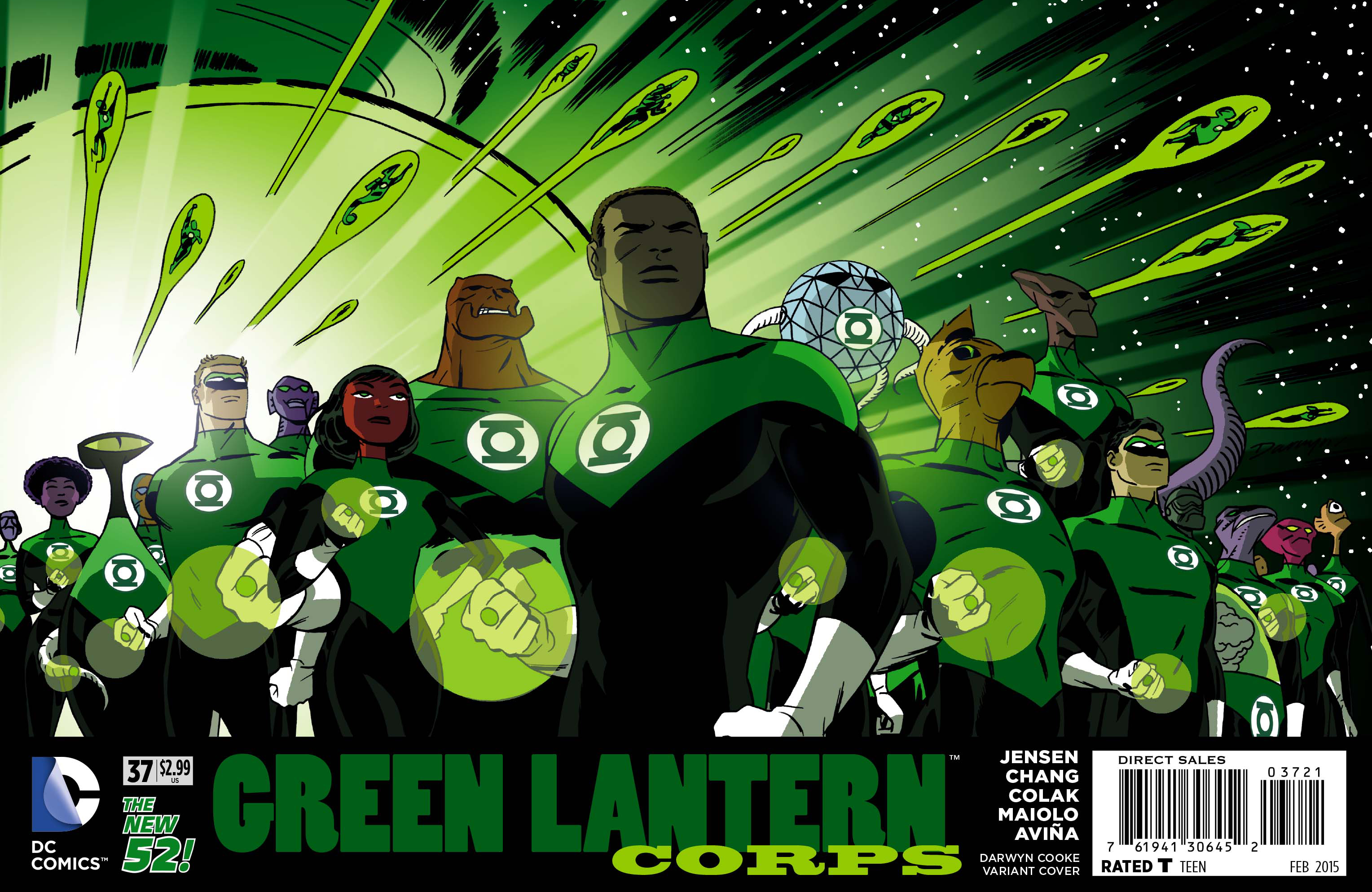 "Godhead," act 3, part 2: John Stewart leads an army of Lanterns of every color in an assault on New Genesis! Getting to the New Gods' home was nearly impossible - and battling them will be worse! The universe is counting on the multi-colored Corps, but its true hopes may depend on a select few...without rings?