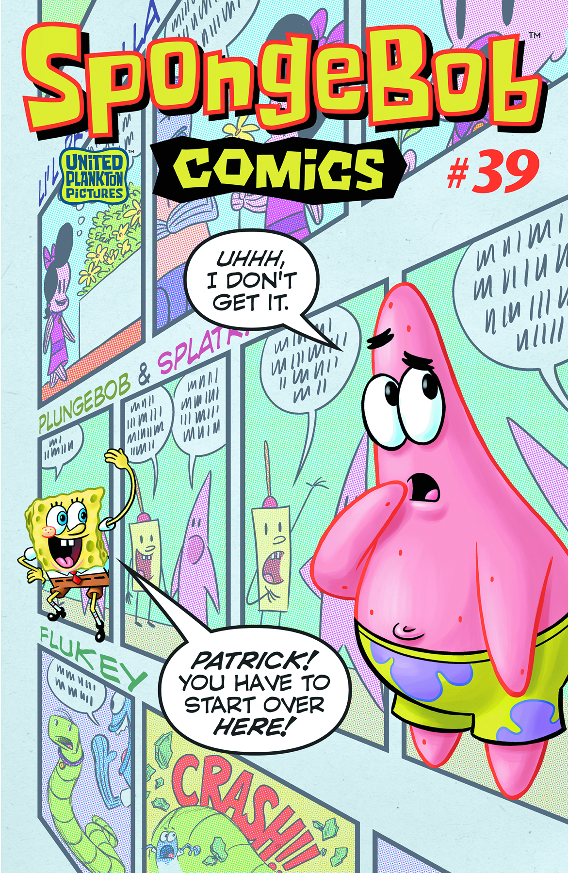 A sneaky cartoonist turns SpongeBob and Patrick into the stars of a new hit comic strip - "PlungeBob and Splatrick" - and the briny buddies can't handle the fame! Then, Mrs. Puff's vacation cruise is severely compromised by a certain stowaway fry cook. Plus Kaz and Gary Leib tell the story of a customer who hates SpongeBob; Maris Wicks reveals scientific secrets of the puffer fish; and Scott Roberts draws a very Pogo-esque SpongeBob pin-up!