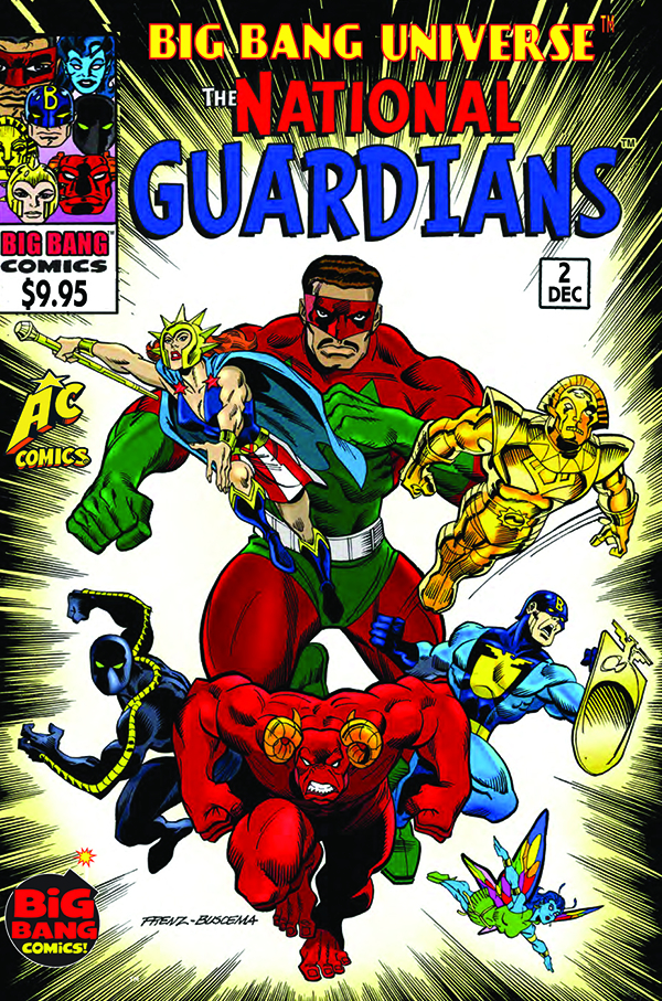 The marvelous National Guardians - Badge, Golden Idol, Butterfly, Venus, Ramm, El Gigante and Black Adder - face Hyper-Ape. Meanwhile, The Ancient Mariner seeks the Blue Ox to aid his conquest of the surface world. Solo adventures include Black Adder, plus Renegade in a thriller illustrated by Ron Frenz and Sal Buscema!