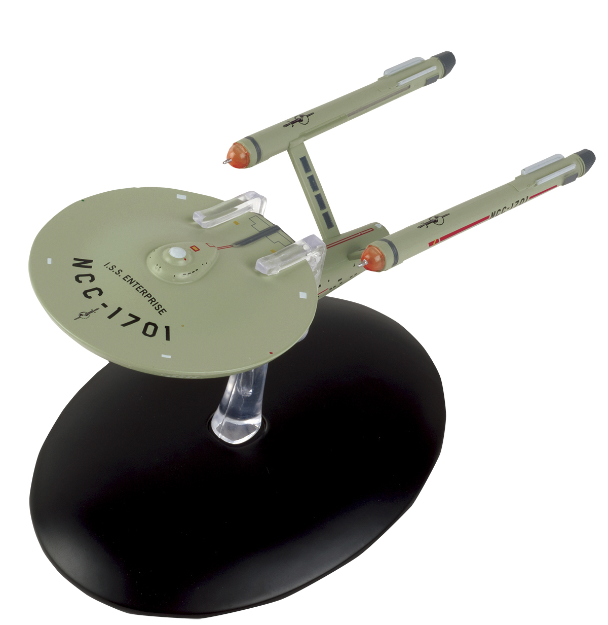 This special issue of STAR TREK: THE OFFICIAL STARSHIPS COLLECTION takes the Enterprise into the twisted Mirror Universe where Spock has a goatee and everyone is evil. This version of the original Enterprise has many of the features of the ship in the first pilot with different versions of the nacelles, the Imperial I.S.S. registry and the symbols of the Terran Empire. The accompanying magazine profiles the mirror universe.