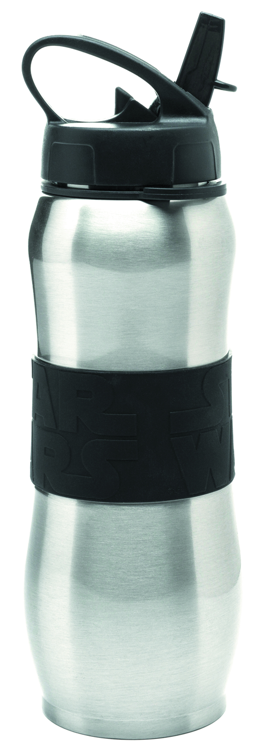 Star Wars Classic single wall stainless steel bottle is a sophisticated way to hydrate all day while showing the force on-the-go, around the house or at the office! Its 29.5 oz. capacity is sized just right to hold plenty of water, but it's still shaped to conveniently fit in car cup holders. The bottle includes a built-in straw with a spout that flips up to drink and flips down to keep it clean and create a spill-proof seal. The bottle's ergonomic shape is enhanced by a silicone wrap around the middle with the