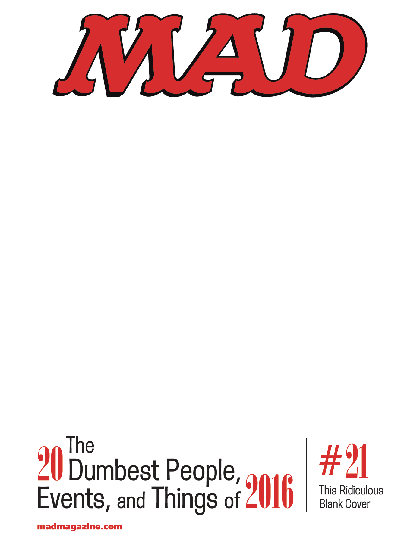 The end is near for this year-which means it's time for MAD's "20 Dumbest People, Events and Things of 2016." And you (or your favorite artist) can drawn the 21st dumbest item on the list on this issue's special blank variant cover!