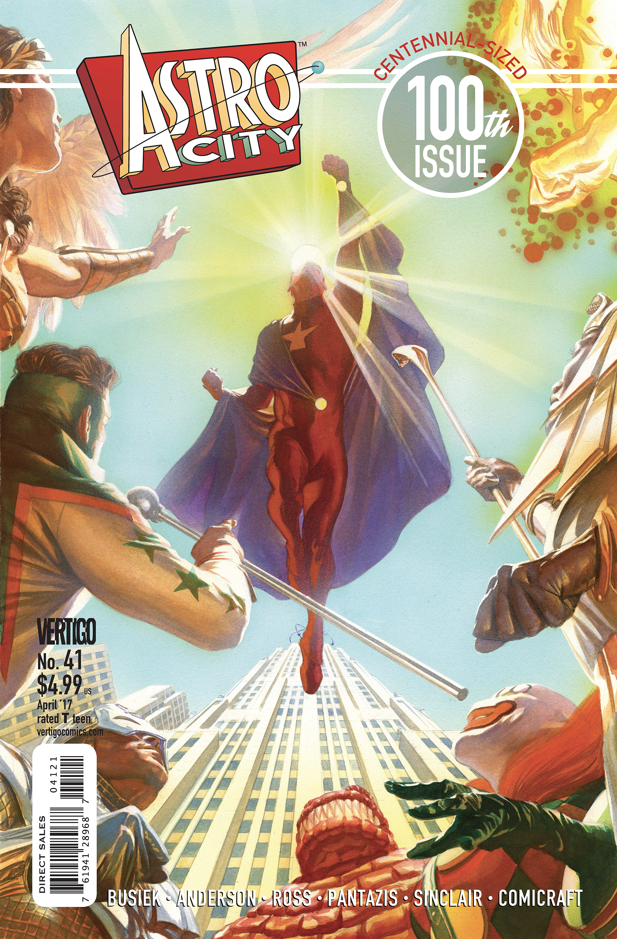 It's our 100th issue celebration! This 40-page extravaganza introduces Astro City's most revered hero-the Astro-Naut! Learn his secrets! See him in action! And in the heat of World War II, see the stunning sacrifice that inspired a grateful populace to rename a city after its greatest hero. Also featuring the All-American, the Lamplighter, Zootsuit and the debut of the Gentleman, as our tour through Astro City's history continues!