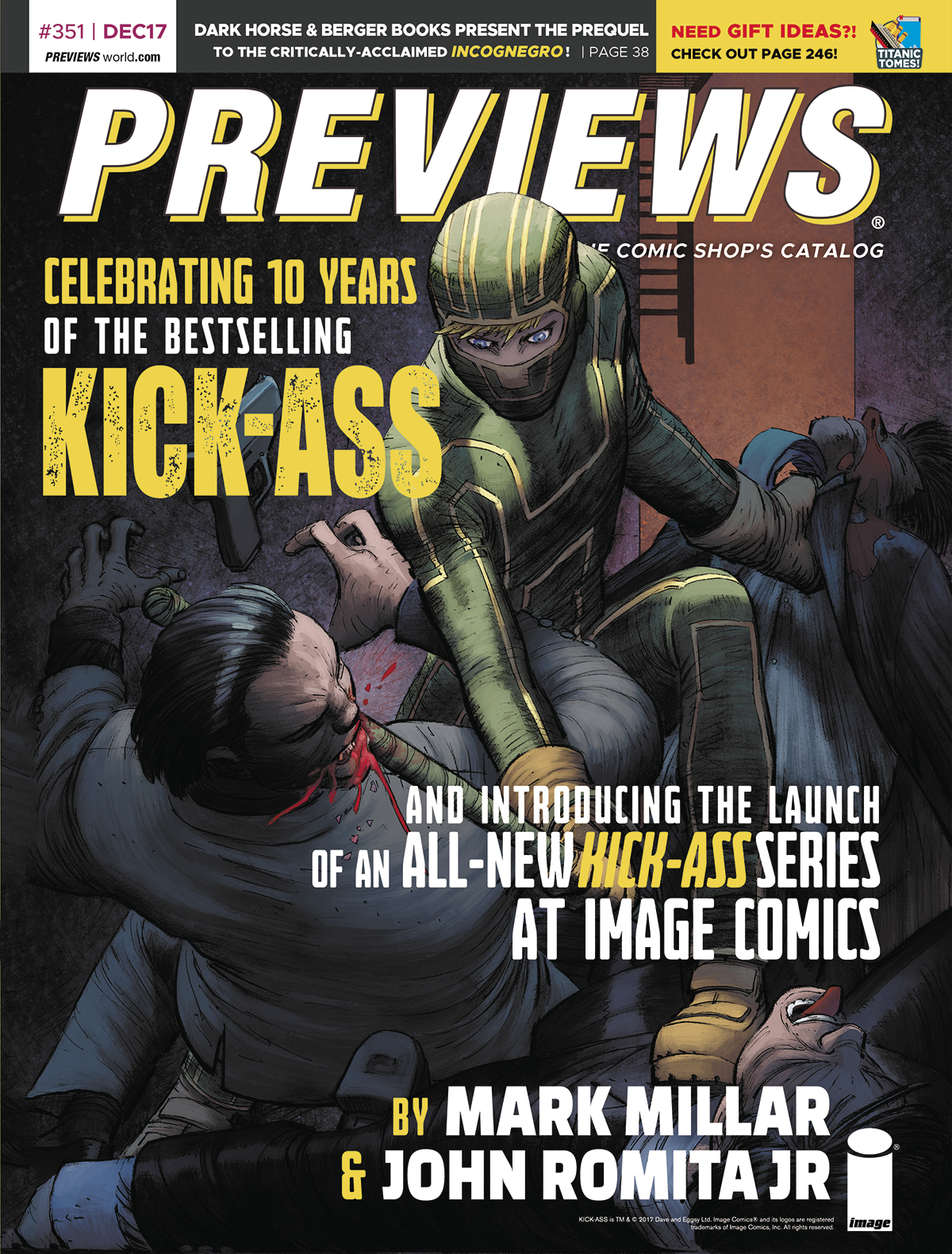 PREVIEWS is your ultimate guide to comics, graphic novels and pop-culture merchandise available from your local comic book shop... revealed up to 2 months in advance! Read detailed product descriptions and storylines for hundreds comic books and graphic novels from the top comic book publishers; see the coolest toys and pop-culture merchandise on Earth; plus PREVIEWS Exclusive items you'll find nowhere else! It's a great monthly read to find out what's at comic shops! This December issue features items scheduled to ship in February 2018 and beyond.