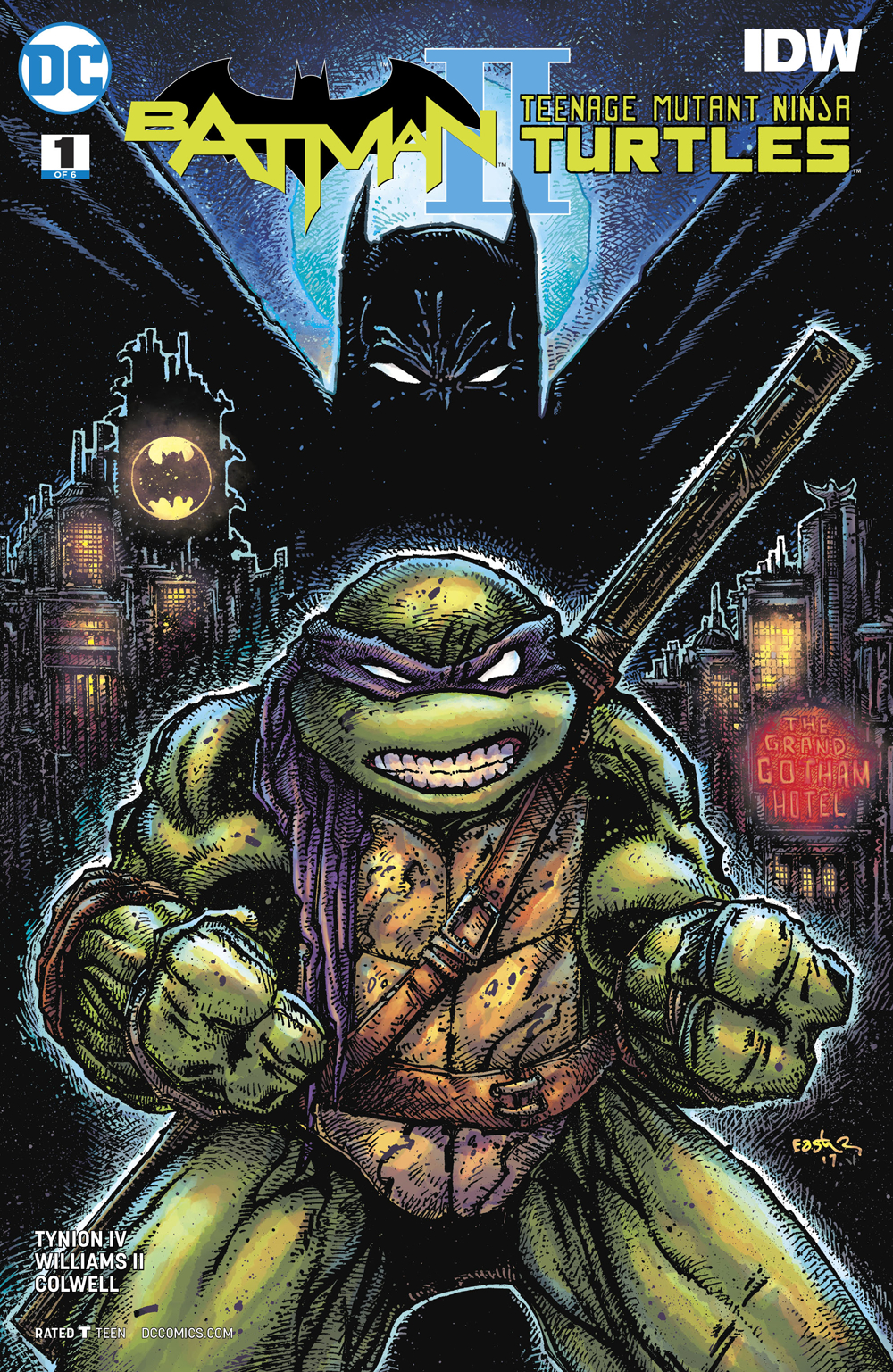 The team behind the smash-hit crossover series is back to reunite the Dark Knight and the Heroes in a Half-Shell. When Donatello goes looking for a new mentor to help him improve his fighting skills, he opens a doorway to another reality, hoping to summon the Turtles' one-time ally, Batman. But instead, he gets sent to Gotham City and someone else comes through the open portal-Bane! Suddenly, there's a new gang boss in New York and he's out to unite all the other bad guys under him. Can Donnie get back in time and bring Batman with him to help his brothers before Bane causes irreparable destruction? Co-published with IDW.