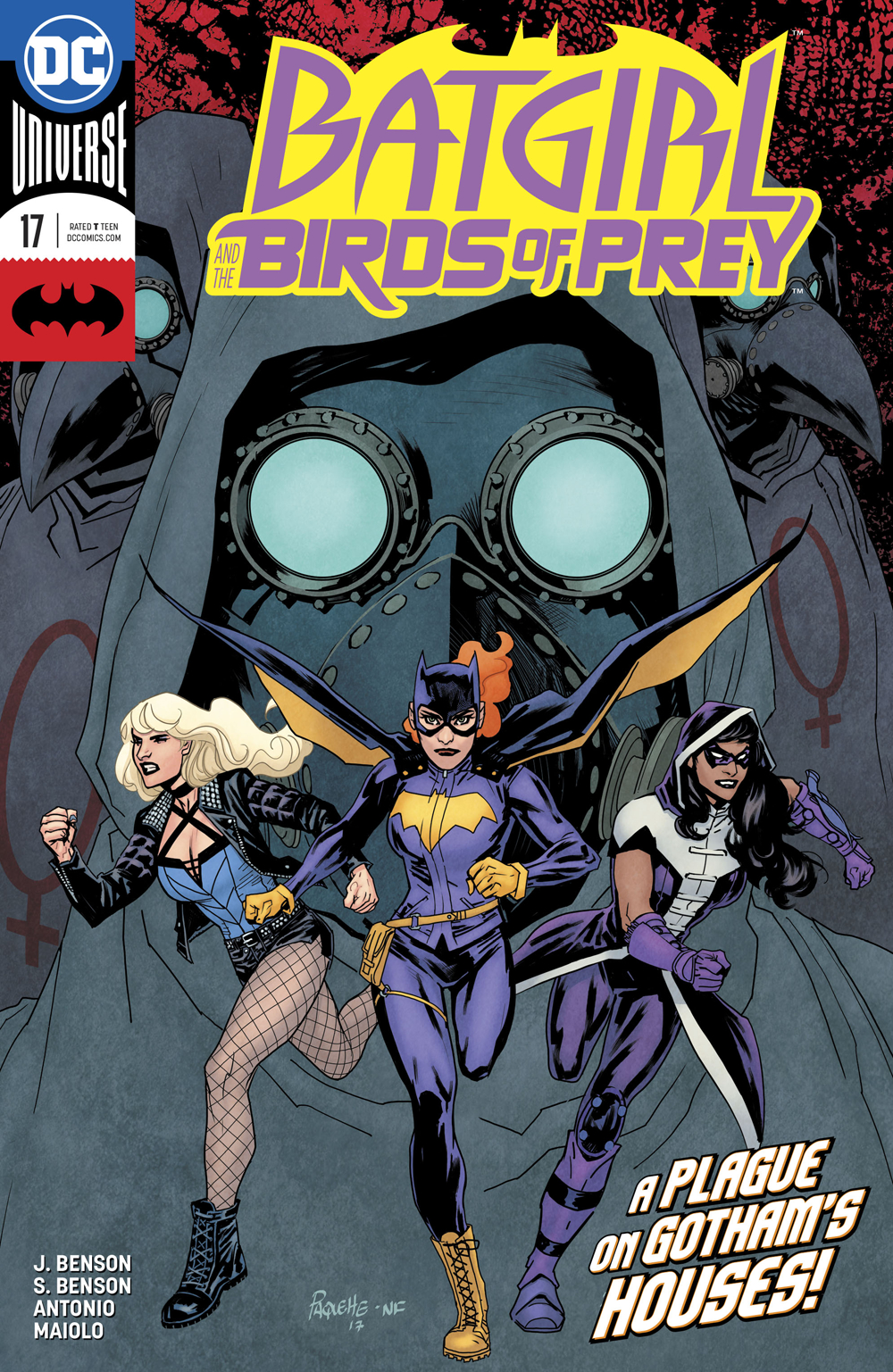 "MANSLAUGHTER" finale! A mysterious plague has infected all the men in Gotham City! The Birds of Prey have united the city's female heroes to stop whoever's behind this manfluenza, but even their combined might may not be enough to defeat the Daughters of Gotham and their mysterious leader, Patient Zero. They'll have to act quickly if they want to save Batman and the men of Gotham before they succumb and the virus spreads far beyond the city limits.