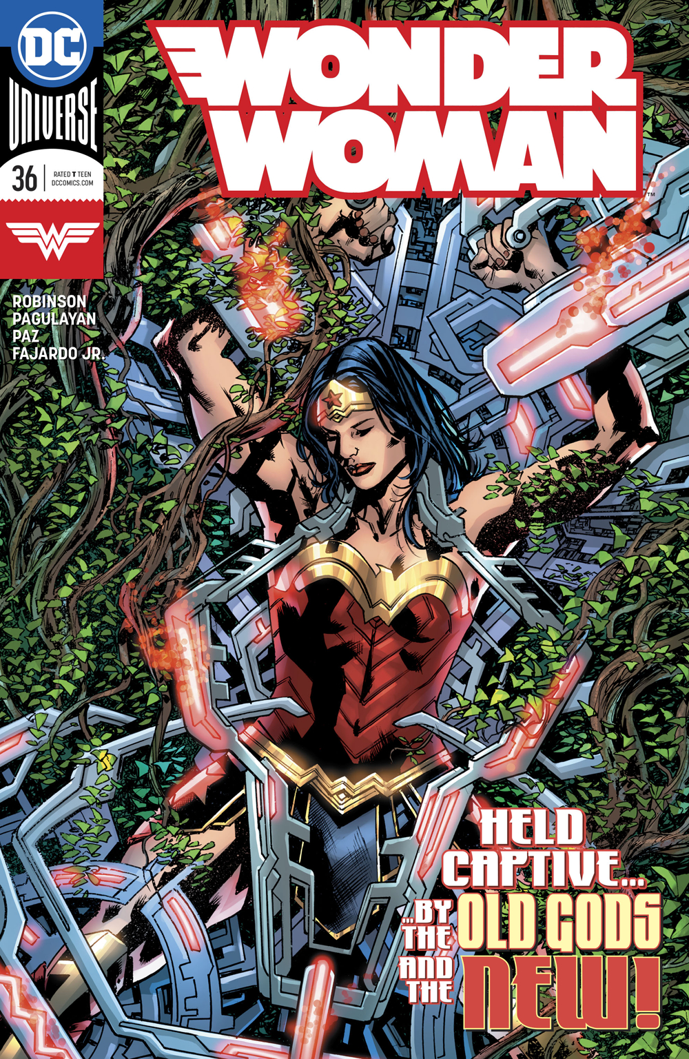 "CHILDREN OF THE GODS" part four! Captured by Darkseid's daughter, Wonder Woman finds herself in chains and at the mercy of the Lord of Apokalips. As Darkseid begins to steal her powers to increase his rise back to godhood, an unexpected ally appears to face down the one-time God of Evil.