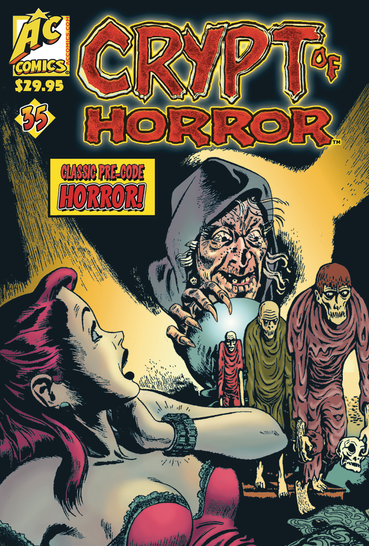 Twenty-three of the weirdest pre-Code horror stories from obscure 1950's publishers Standard, Fawcett, Story and others, including hair-raisers "The Vengeance Vat," "Satan's Bullet," "The Devil's Prize," "Deadly Diamond," "Sinister Santa Claus,""The Ring of Horror," "City of Fearful Night," and more. Artists include Baily, Powell, Sekowsky, Moldoff, and other greats.