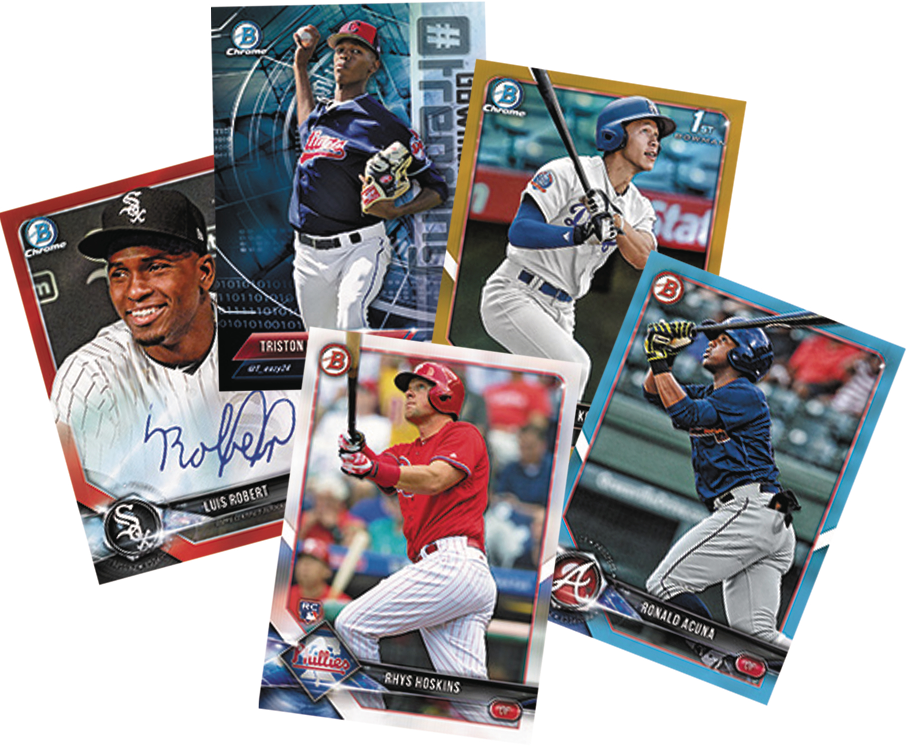 From Topps. 2018 Bowman Baseball will hit shelves in 2018 AS The First Place to Find the Game's Future Stars. Continue to find MLB-licensed trading cards of the game's biggest prospects as well as 2018's most promising rookies. 2018 Bowman will be better than ever before by featuring the following product improvements: 2 NEW 2018 Bowman Sterling Continuity insert cards guaranteed per Hobby Jumbo box, NEW insert subsets focused on the game's elite prospects and biggest 2018 rookies, each with an assortment of color refractor parallels, and Dual Bowman Prospect Autograph Cards, showcasing dual on-card autographs of the game's future stars.