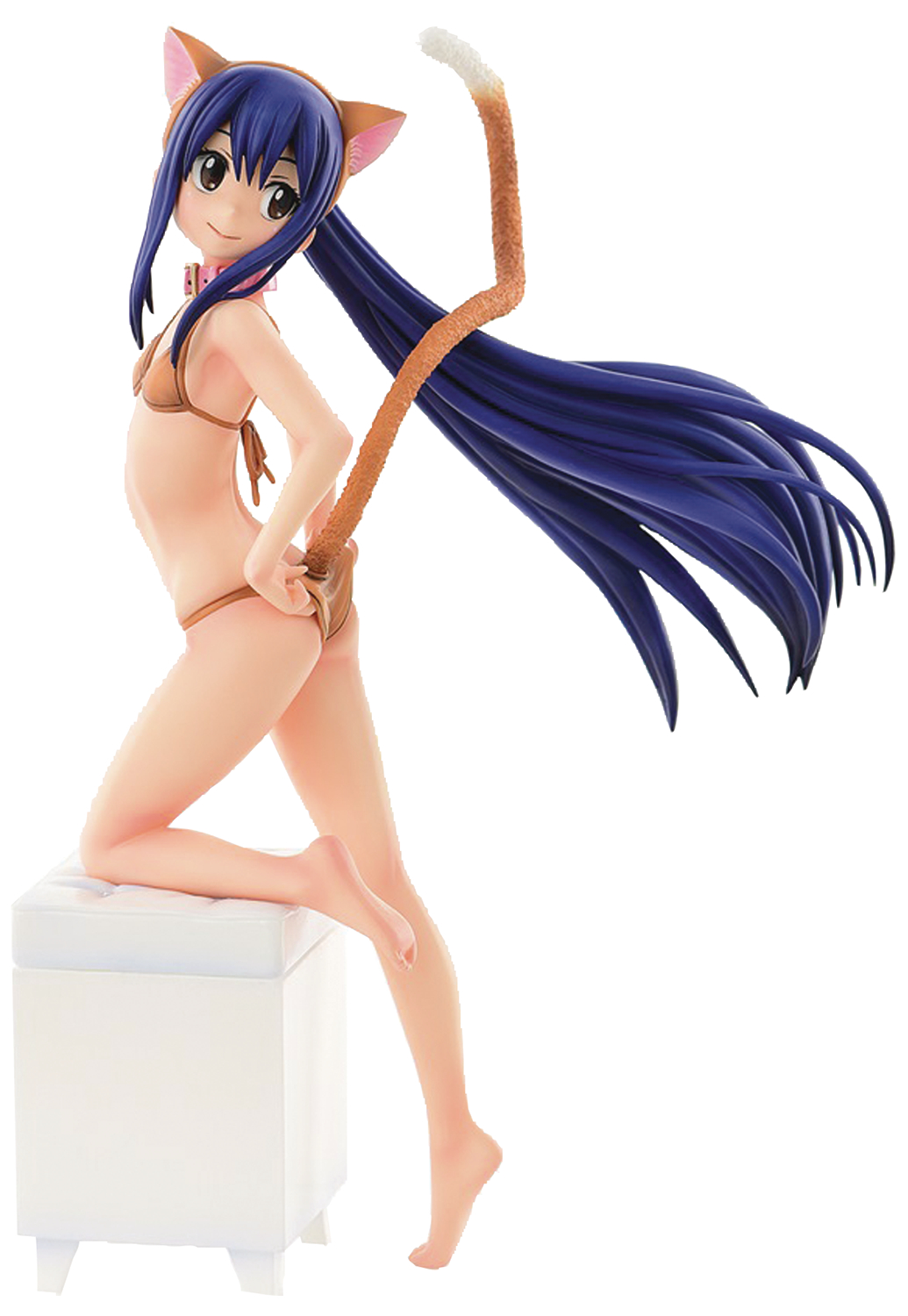 Fairy Tail guild. Wendy poses holding the bikini bottom on the back, resting her knee on a white stool. Made of PVC, this 1/6-scale figure stands 8 7/8" tall.