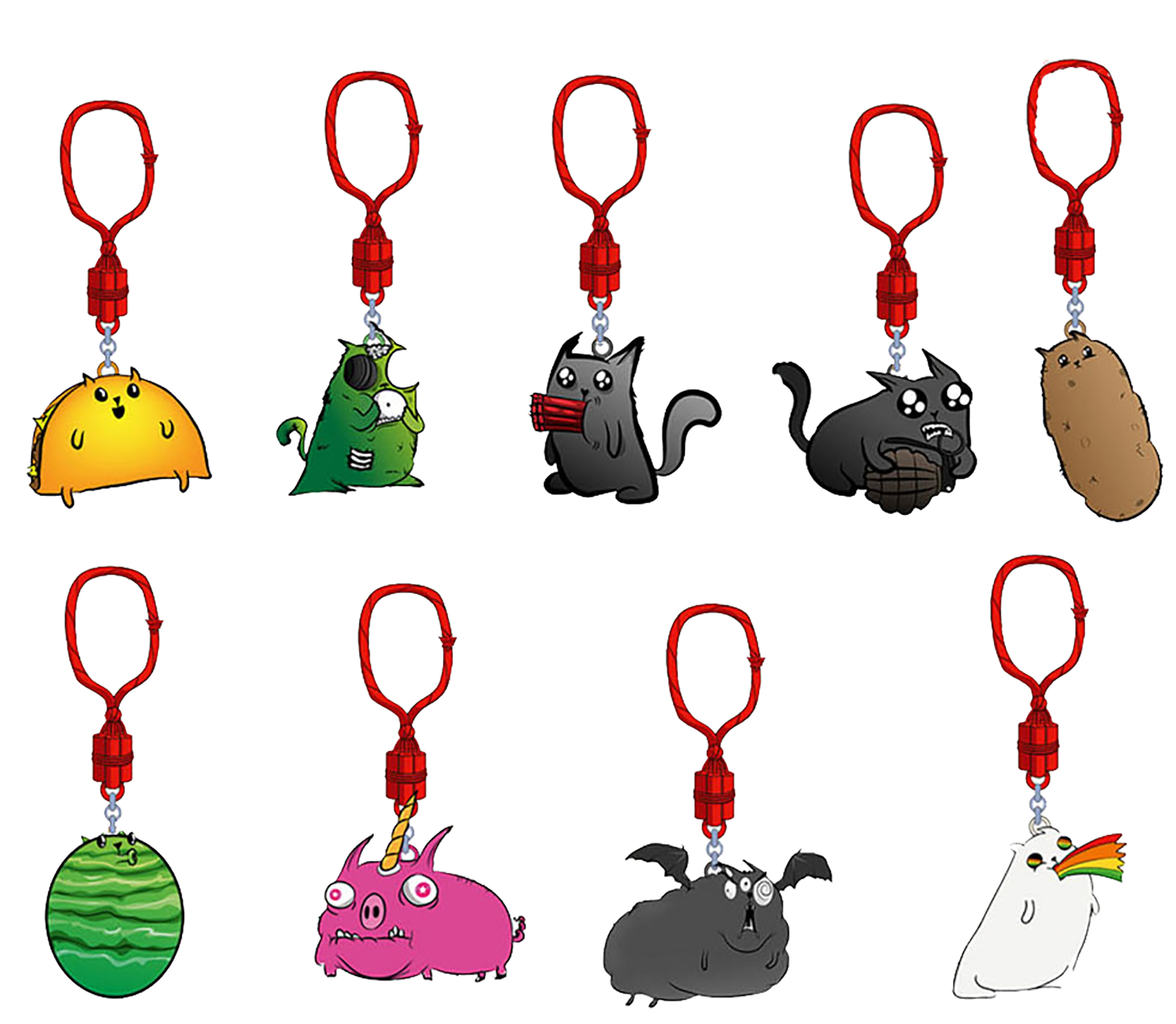 Exploding Kittens figure hangers! Each blind bag contains one surprise figurine. These
