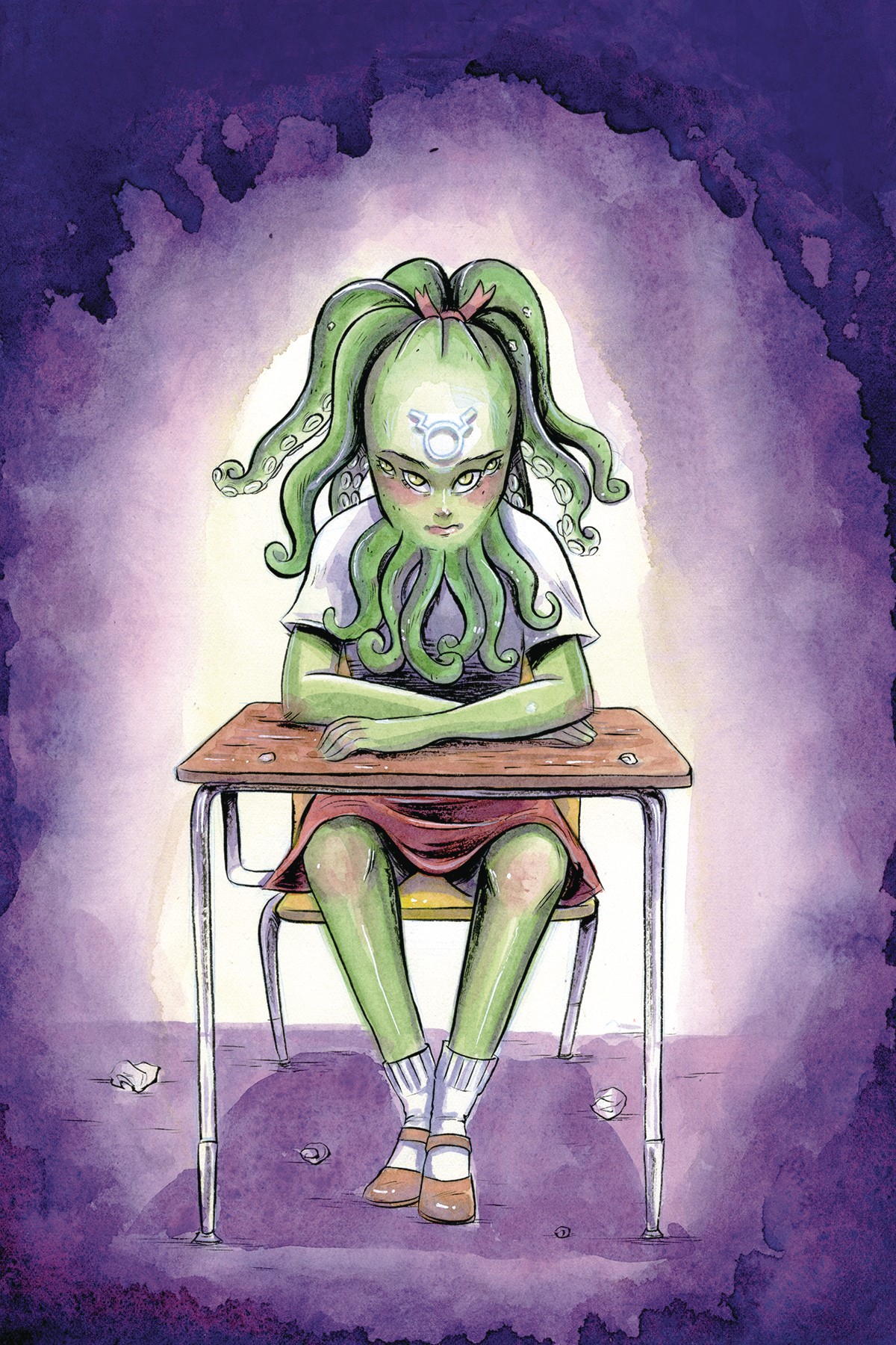 Spawned by the emissary of a Cthulhu god, Cthu-Louise struggles and is teased at school due to her monstrous appearance. Finally fed up with the bullying and abuse, she decides she will do anything to make herself "normal."