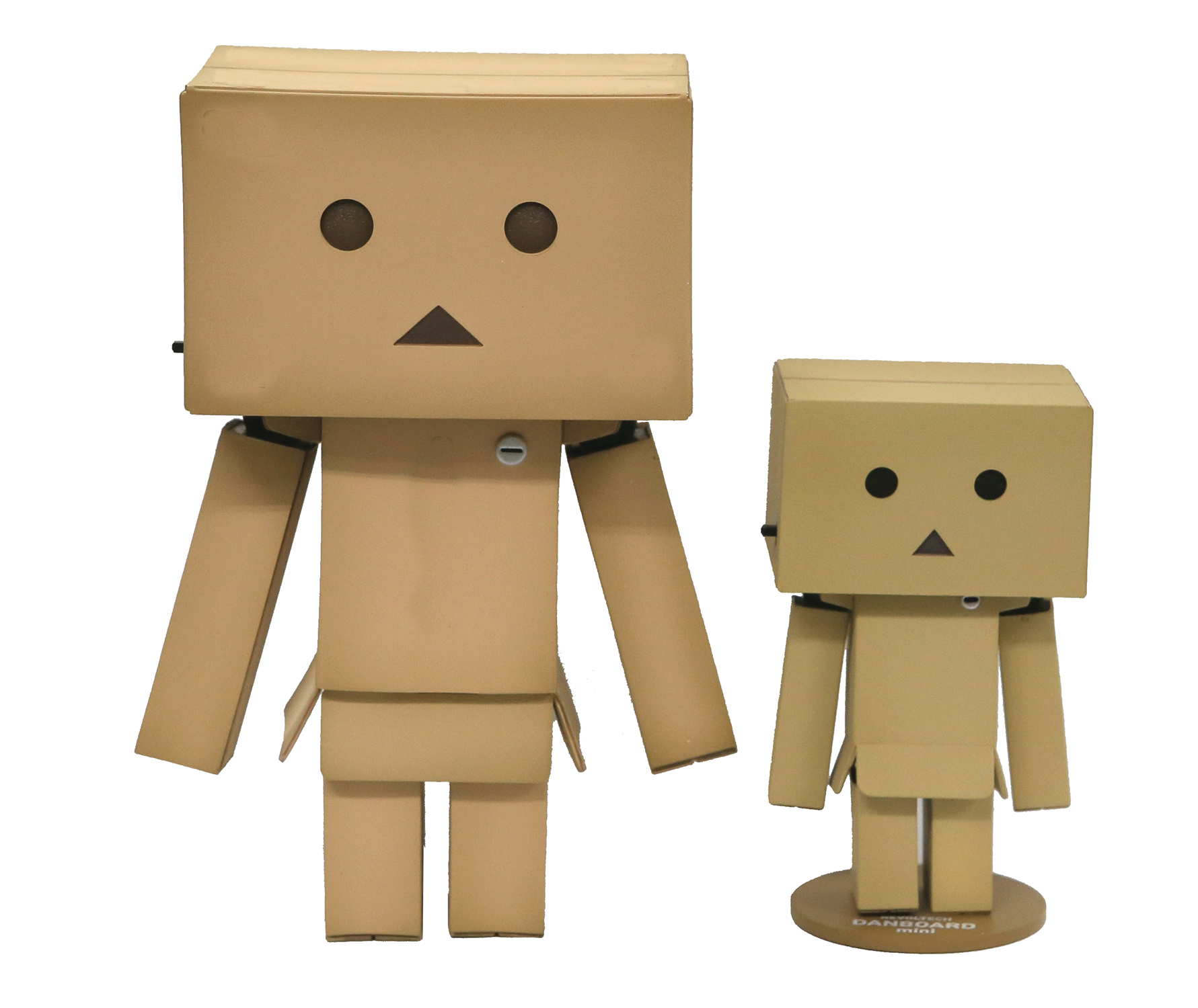 This delightful mini figure of the beloved cardboard box robot stands just over 3" tall.