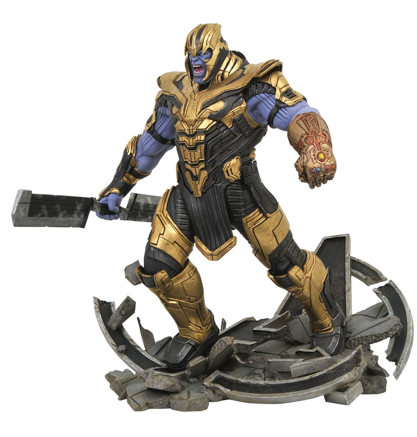 A Diamond Select Toys release! Game over! This 12-inch scale statue of Thanos is based on his appearance in Avengers: Endgame, and measures approximately 16 inches tall. It is limited to only 1000 pieces and comes packaged in a hand-numbered, full-color box with a certificate of authenticity. Sculpted by Jorge Santos Souza.