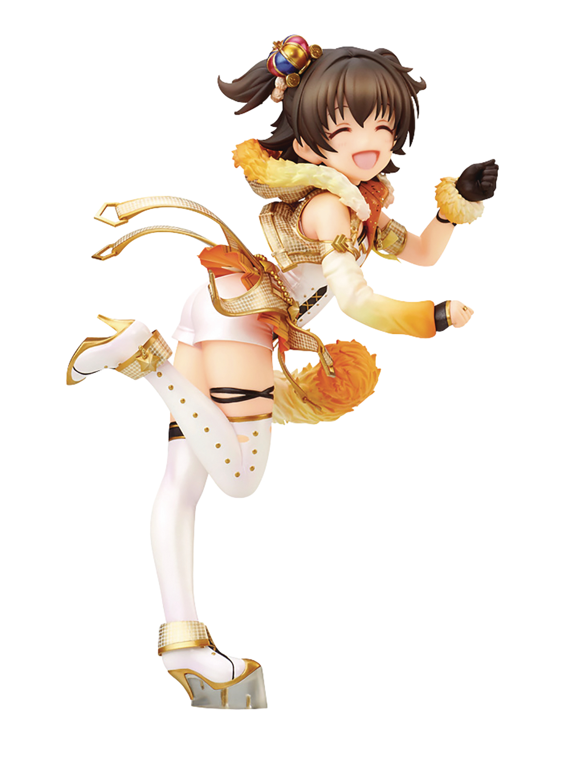 THE iDOLM@STER: Cinderella Girls gets a 1/7-scale figure from Alter wearing her Party Time Gold stage outfit! Miria is full of energy, captured mid-dance with one leg popped, and a smile as bright as her golden costume. The texture of her fluffy hood and accessories, as well as the many details of her outfit, have been beautifully recreated. And to top it all off, she comes with an optional winking expression so you can display her in one of two ways.