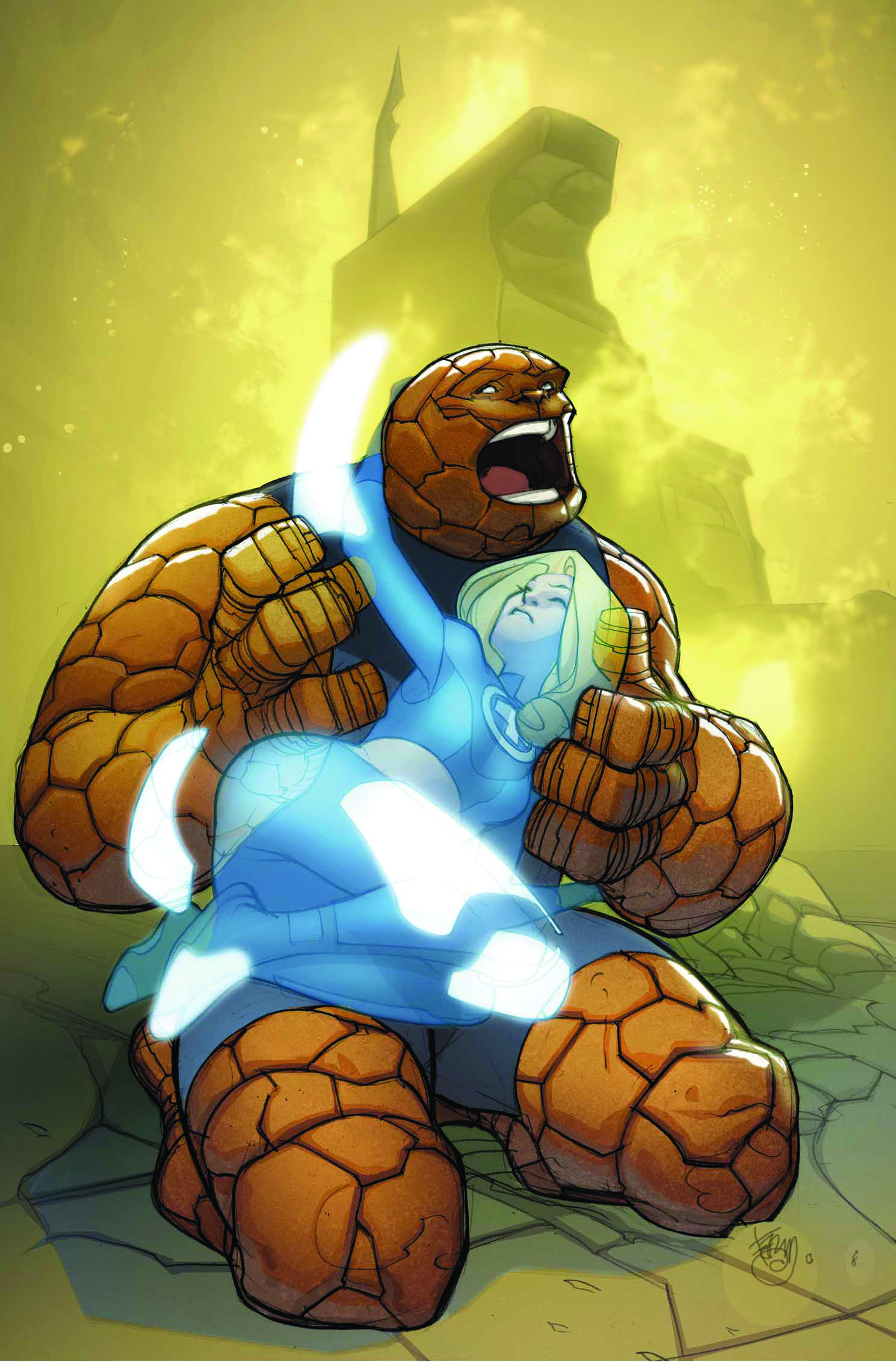 Ultimatum hits the Baxter Building! As the team is torn apart in more ways than one, the fate of the Fantastic Four rests on the rocky shoulders of the Thing. Ben Grimm steps up and embarks on a hero's journey to the very center of the Earth to find the one man who can help his imperiled teammates. And that's just the beginning...