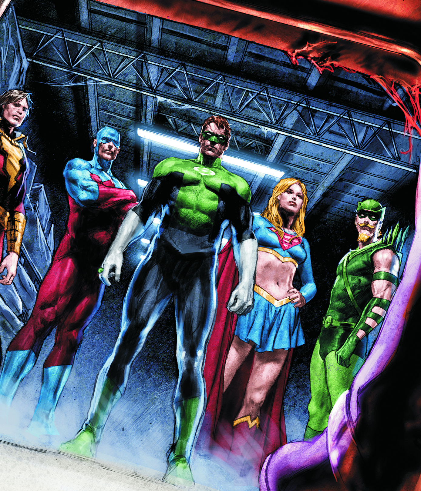 Supergirl and Shazam join the team as Prometheus is finally captured! His evil machinations are revealed, but even so, the League may be unable to stop the villain's disturbing plans as he cuts down one of the members! Don't miss this shocking new issue that'll have everybody talking.