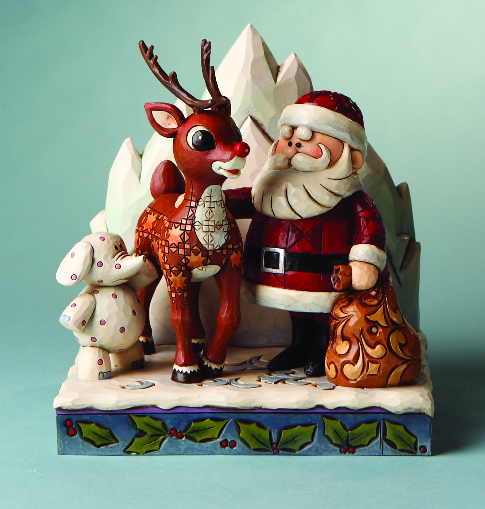 Rudolph the Red-Nosed Reindeer has enchanted viewers for over thirty years, and the characters of the beloved stop-motion special from Rankin-Bass meet traditional American art styles in Jim Shore's