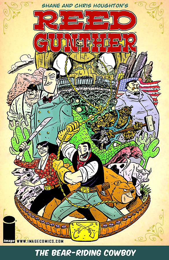 Everyone's favorite bear-riding cowboy gallops into his first collected edition! REED GUNTHER and his trusty grizzly bear steed bumble their way through the wild west fighting giant snakes, hoards of mole creatures, a resurrected John Henry zombie, freak show freaks, special government agents, and all sorts of wild monsters created by an ancient mysterious Idol! This colored collection of excitement, friendship, and adventure is fun for folks of all-ages!