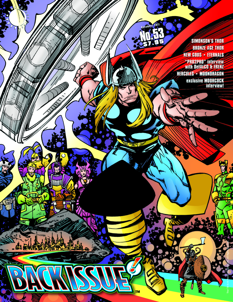 Back Issue takes an in-depth look at Walter Simonson's Thor in this "Gods" issue! And there's more Thor: the Thunder God in the Bronze Age and a Tom DeFalco/Ron Frenz "Pro2Pro" interview. Plus: Hercules: Prince of Power, Moondragon, Three Ways to End the New Gods Saga, and an exclusive interview with fantasy writer Michael Moorcock. Featuring art and/or commentary by Gerry Conway, Jack Kirby, Bob Layton, and more, with a hammer-swinging Thor cover by Simonson! Edited by Michael Eury.