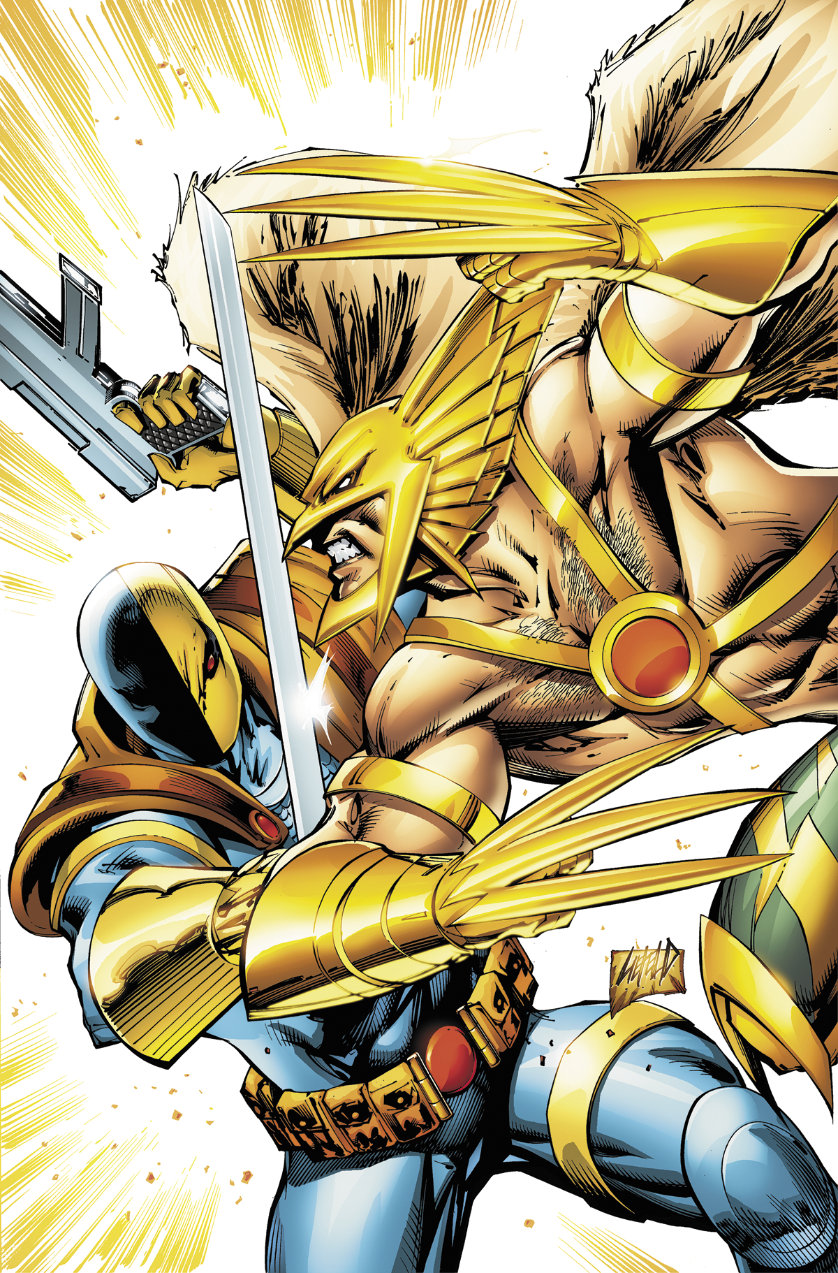 • Find out what the mysterious connection is between Deathstroke and Hawkman's Nth Metal armor!
