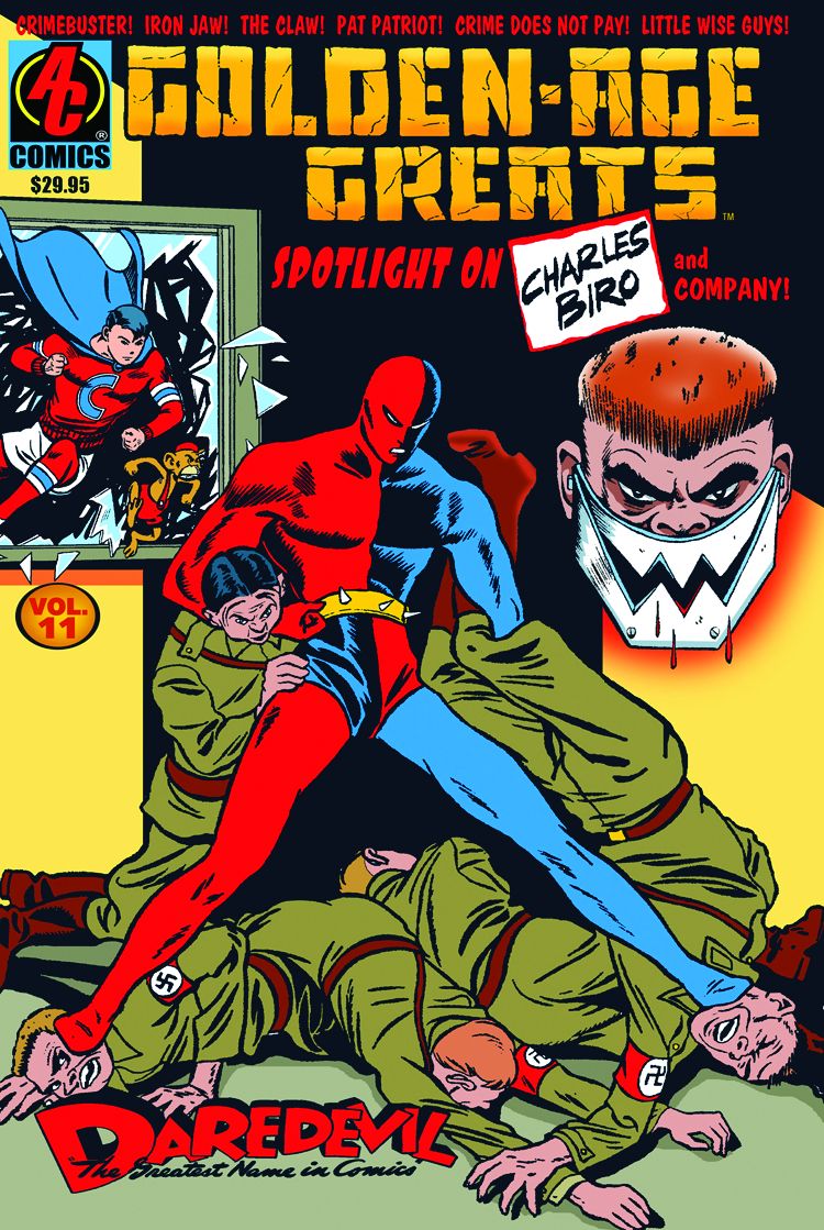 Daredevil #7, featuring the original DD himself, Thirteen and Jinx, Nightro, Pat Patriot, London and The Ghost vs. The Claw! Plus: Crimebuster vs. Iron Jaw, The Little Wise Guys, and Biro's groundbreaking crime comics.