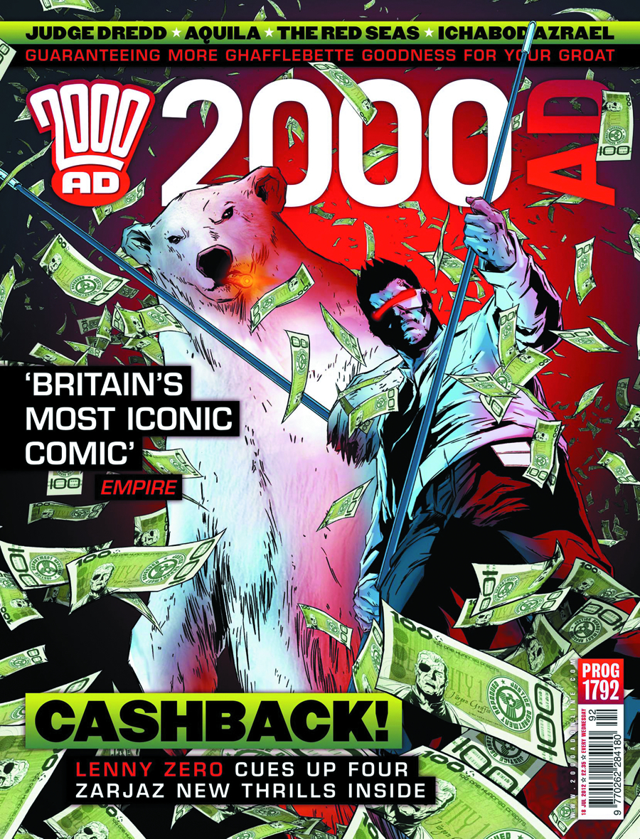2000 AD is the UK's award-winning weekly SF anthology comic, and it features a stunning line-up of writers and artists. ABC Warrior Hammerstein's deadly mision comes to its climax in "Return to Earth" by Pat Mills and Clint Langley; Wren reaches journey's end in "Brass Sun: The Wheel of Worlds"; Jack Point discovers the conspiracy to end all conspiracies in "The Simping Detective: Jokers to the Right"; Dirty Frank catches a ride home to save the world in "Low Life: Saudade"; and Judge Dredd is on the trail of a villain at the highest level of Justice Department in "The Cold Deck."