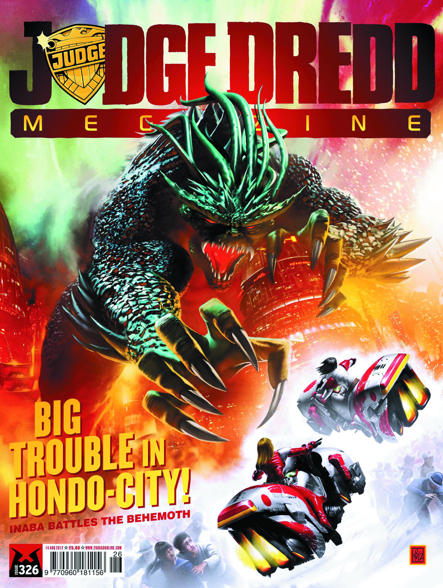 More action and adventure in the future-shocked world of Judge Dredd! Dredd is at the mercy of the degenerate Ratfink in the climax to "Ratfink's Revenge"; the blood trails lead to a sinster church in "Anderson, Psi-Division: Stone Voice"; and there's carnage on the moon in a bonus Dredd story. In addition, in the bagged graphic novel this month, tales from the mean streets of Downlode by Dan Abnett, Trevor Hairsine, and Greg Staples!
