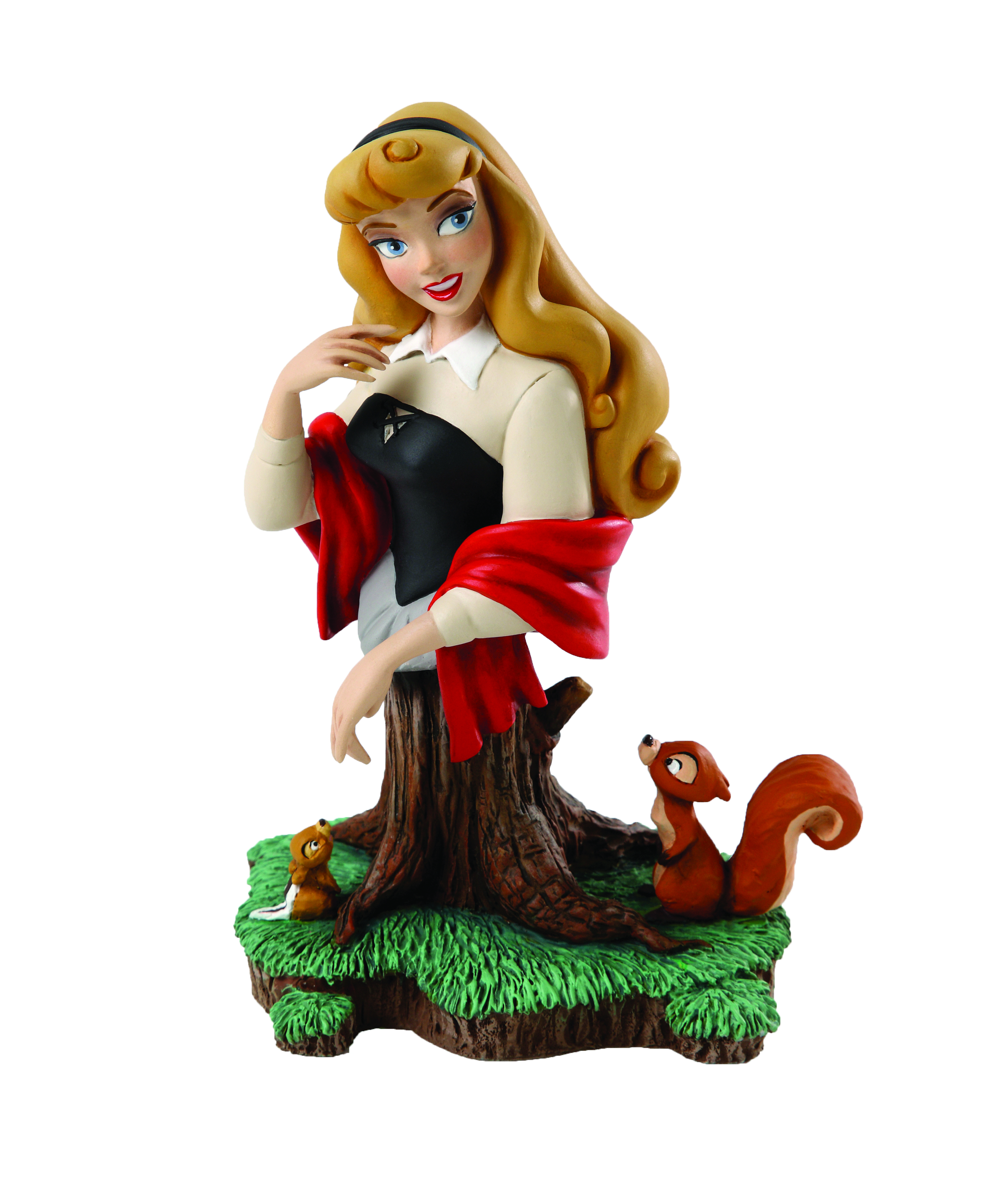 Deep in the forest, far from malevolent eyes, lives a fair damsel of unsurpassed beauty. Raised by three wise women who fiercely guard her true identity, the young maiden spends her days communing with her only friends, the small, woodland creatures whom she adores. Her name, so far as she knows, is simply Briar Rose. But unbeknownst to her, she is actually the long-lost Princess Aurora. And when her secluded sanctuary is discovered by a questing prince, events conspire to bestow upon her an even more famous title: Sleeping Beauty. This character-authentic polystone mini-bust is designed and sculpted by Patrick Romandy-Simmons. Standing 7" tall, Briar Rose comes painted and ready to display.