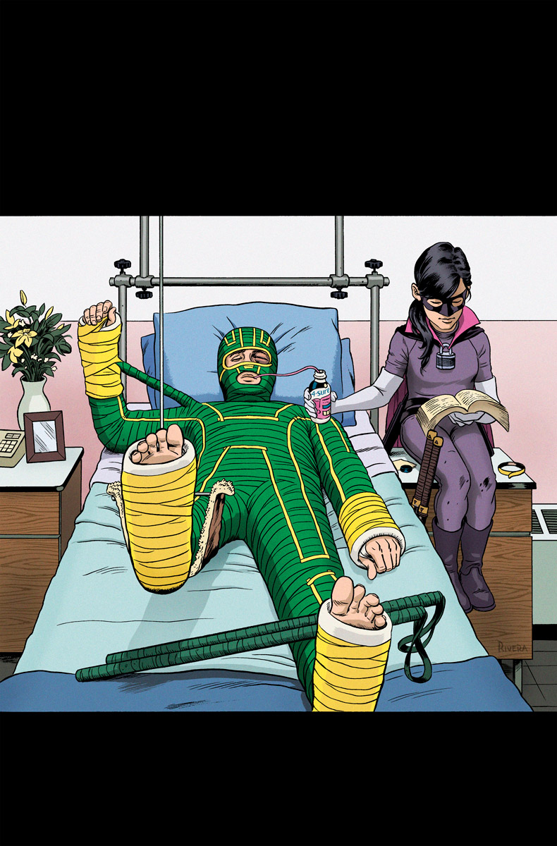 From Marvel Comics. Hit-Girl's day of reckoning has arrived. Tied up mentally and physically, she's an easy mark even for a washed-up super-villain like Chris Genovese (formerly known as The Mother F**ker). Where is Kick-Ass when she needs him most? What's happened to all the costumed superheroes? A major character death is imminent and with only one more issue before the series finale, it could be anyone!