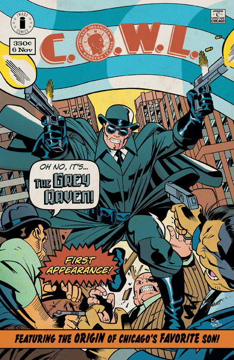 Before he started C.O.W.L., Geoffrey Warner fought for Chicago as the city's first hero, THE GREY RAVEN! But what started him down the path of crime fighting? Witness the origin of Chicago Superheroes, the War Years, and the formation of C.O.W.L. as told in the sellout issue written by C.O.W.L reporter and comic book writer Randall Winters.