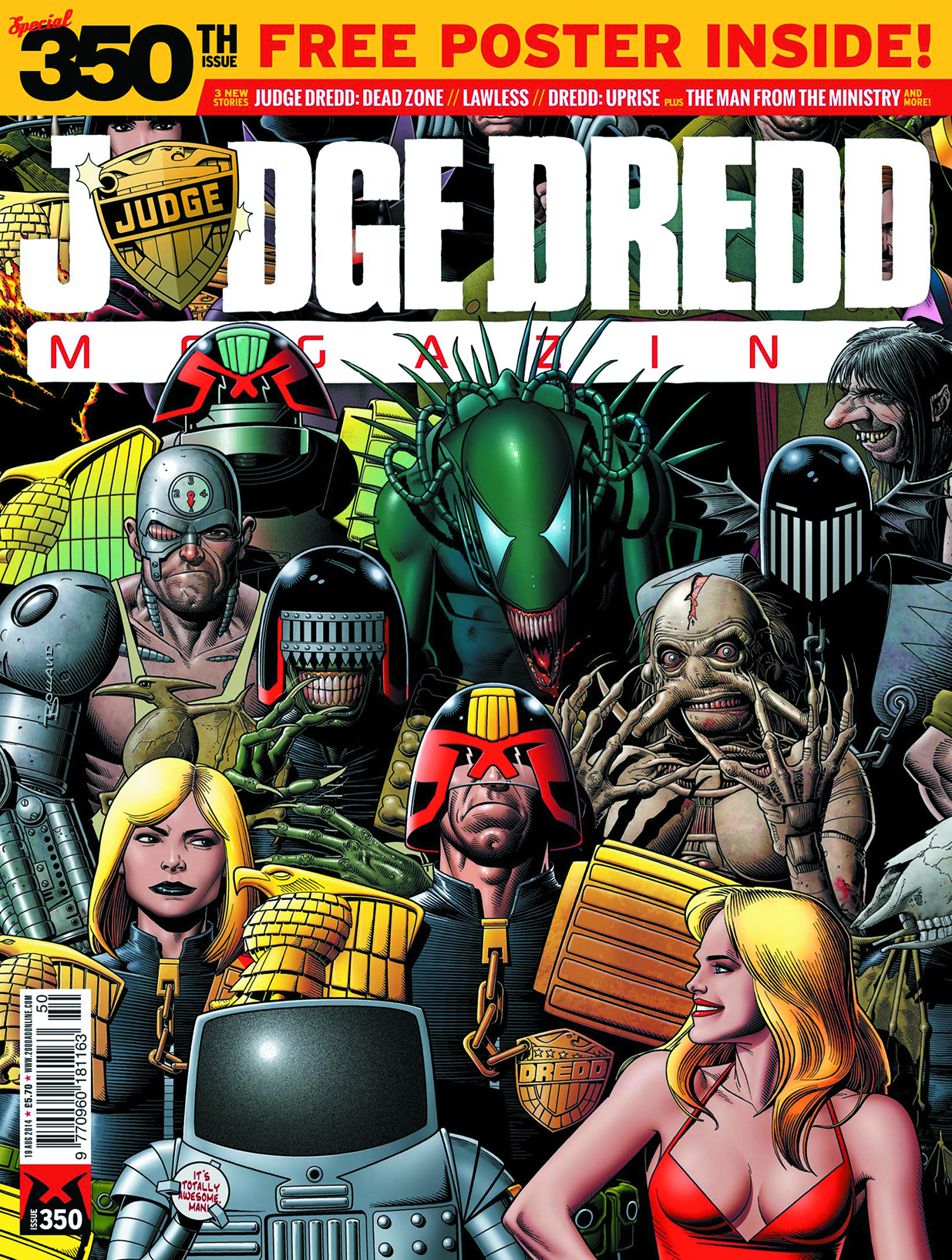 More action and adventure in the future-shocked world of Judge Dredd! Yodie's a wanted man in "Dead Zone" by John Wagner and Henry Flint; Colonel Marshal Metta Lawson realizes she may have bitten off more than she can chew with Badrock in "Lawless" by Dan Abnett and Phil Winslade; and the Dredd movie sequel "Uprise" by Arthur Wyatt and Paul Davidson comes to its explosive finale. Plus, in the bagged graphic novel this month, intergalactic thief Rose O'Rion gets into hot water, courtesy of Kek-W and Andy Clarke!