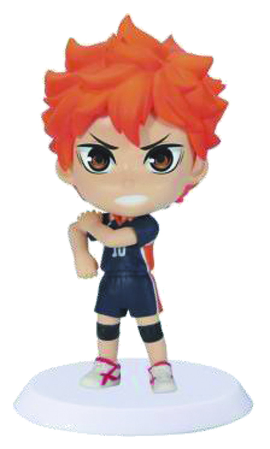 Haikyuu! have been recreated as stylized chibi-kyun figures. Standing 2 3/8" tall, choose from Hinata, Character B, or Character C. Each figure comes with a display stand.