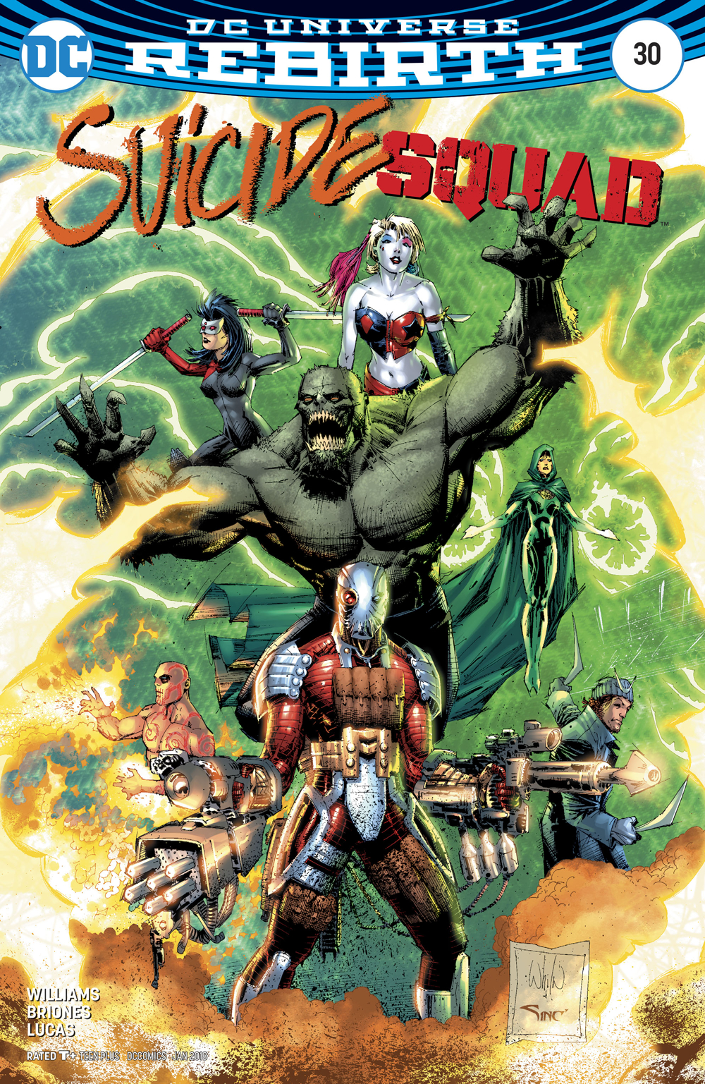 "THE SECRET HISTORY OF TASK FORCE X" part four! The very first threat faced by the original Task Force X was a creature known as the Red Wave, a beast with the power to reduce the whole planet to ashes-and Harley Quinn's heading right for it! But before Deadshot can warn the clown princess, his team is set upon by an army the likes of which the Squad's never seen before. Someone is desperate to protect the secret of Task Force X, even if it means destroying Amanda Waller herself!