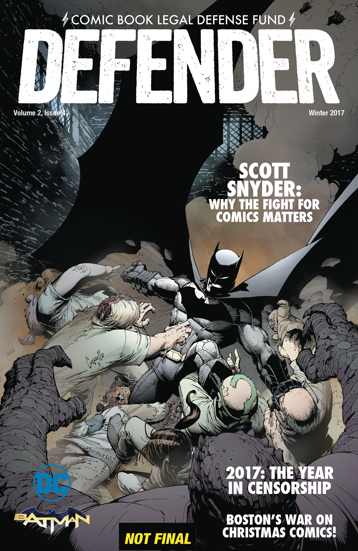 Batman, A.D.: After Death, Wytches) talks about why we the fight to protect comics matters more than ever! Learn about Boston's war on satirical Christmas comics! Plus, a look back at CBLDF's very busy 2017 defending comics and the right to read!