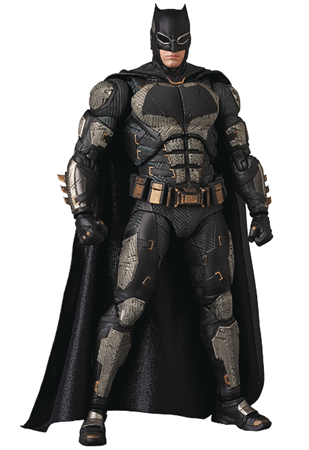 Justice League joins the MAFEX team from Medicom, in his tactical suit! He has three interchangeable faces, a fabric cape with a wired edge for dramatic windblown poses, interchangeable hands, three batarangs, two grapnel guns, a Kryptonite gun, a smoke grenade, 3 mines and a stand. Don't miss out on this ultimate hero, and order him today!