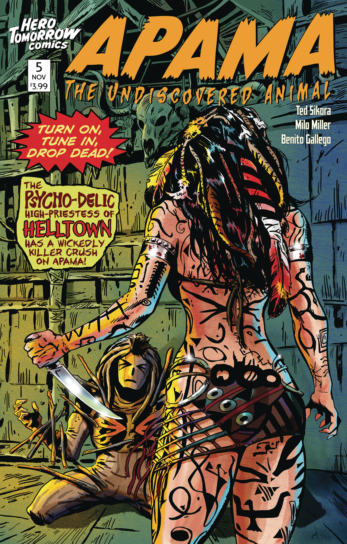 Apama discovers that the legend of the Helltown Cult is a lot more than just a scary campfire story! Witness the first appearance of Apama's arch-nemesis, Regina the Human Bad-Trip, a psycho-delic hippie flowerchild gone wrong! (Soon to be starring in her own series!) This ain't no Summer of Love!