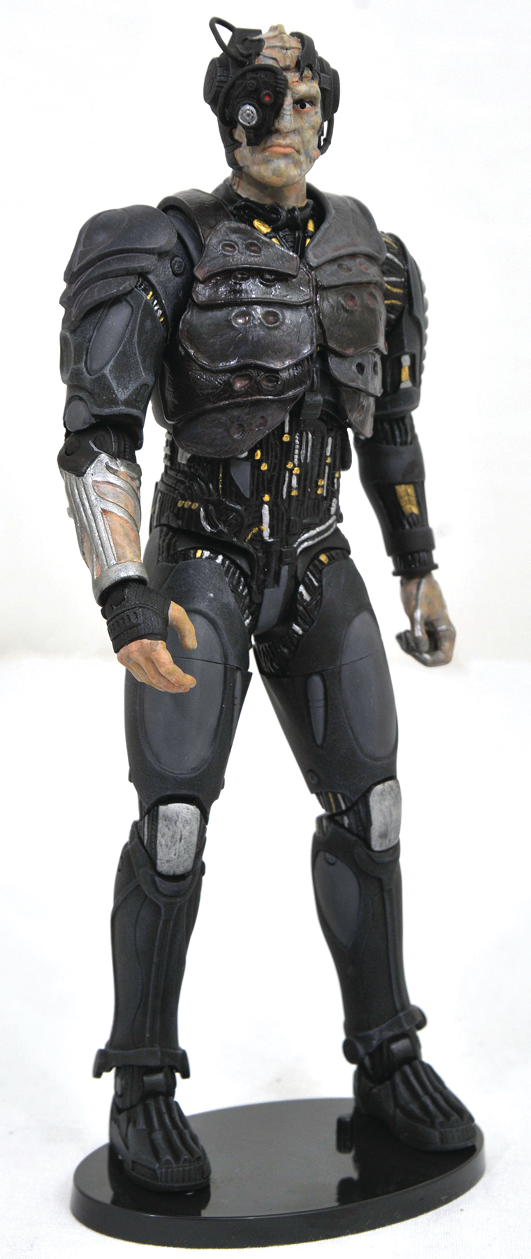 A Diamond Select Release! Resistance is futile! No Star Trek fan can pass up the opportunity to own the ultimate Borg action figure! This 7-inch, fully poseable action figure is based on the Borg's appearance in Star Trek: The Next Generation, and includes multiple interchangeable parts, including human and Klingon heads, various eyepieces, different tool arms and a removable vest. You can create dozens of different configurations and build an army of Borg! With a full 16 points of articulation, this figure comes packaged in display-ready Select figure packaging with side-panel artwork. Sculpted by Patrick Piggott!