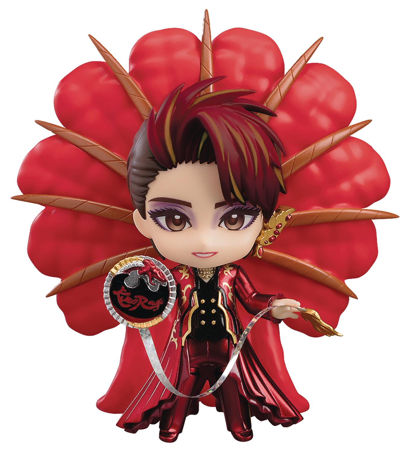 Amazing Star Killer Rouge performed by the Takarazuka Revue's Star Troupe comes a Nendoroid of Yuzuru Kurenai, dressed in the outfit from the show's finale! The elaborate costume and shanshan have both been carefully recreated! Two face plates are included: a smiling expression and a winking expression!