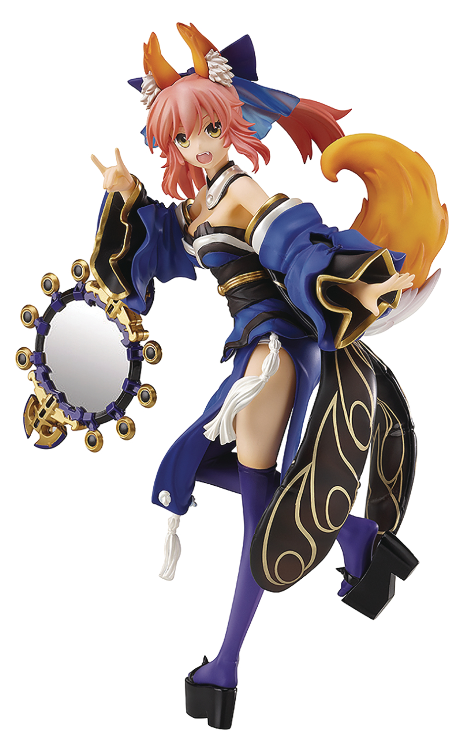 Fate/EXTRA comes a release of the 1/8-scale figure of Caster! She has been sculpted with careful attention given to her most notable characteristics, from her fox ears and tail to her unique blue kimono. The figure has been sculpted in a very dynamic pose overflowing with energy, and even has her posed with her right hand shaped like a fox, adding more to her lovable charm!