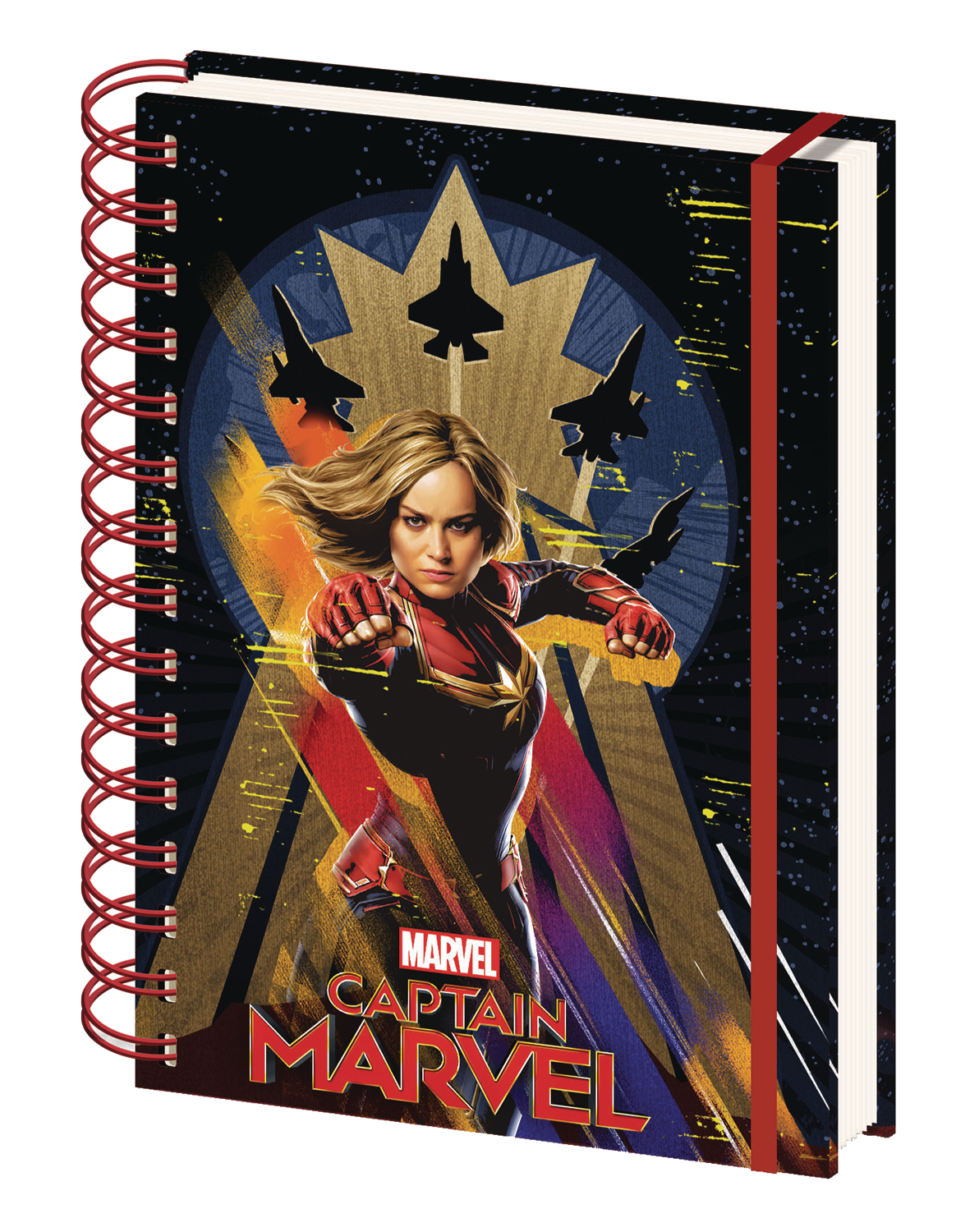 From Pyramid America. Straight out the new Marvel film, comes Captain Marvel, now on a spiral notebook! Notebook measures 5 3/4" x 8 1/4" and features an elastic band to keep your pages neat!