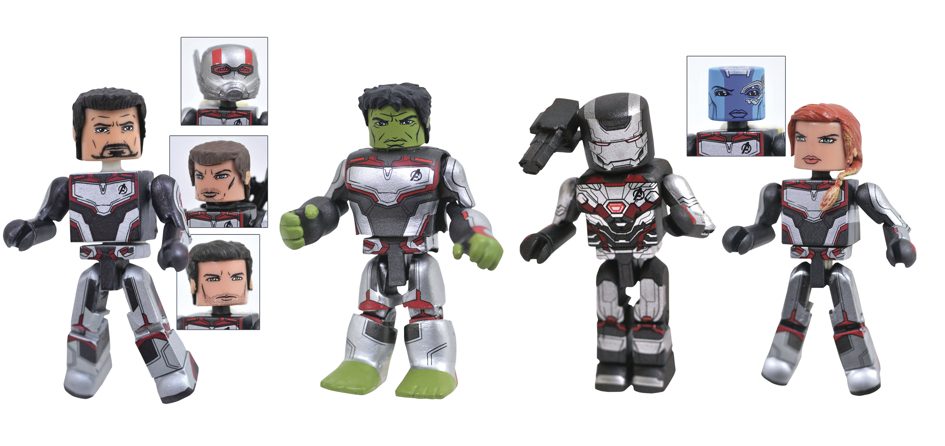 A Diamond Select Toys release! Avengers Assemble! The next Marvel Minimates box set is based on Avengers: Endgame! The set includes Tony Stark, the Hulk, Black Widow and War Machine, plus additional heads for alternate characters! Each 2-inch block figure features 14 points of articulation, and comes packaged in a full-color window box. Designed by Barry Bradfield!