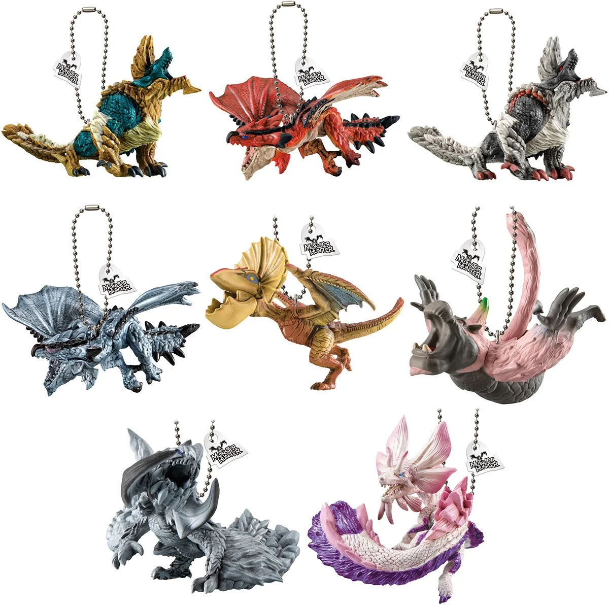 Monster Hunter video game series. Gradients, metallic paint, and dynamic posing bring the monsters to life. Each comes with a ball chain to take it on the go. Collect all 8 designs! This is a blind box item.