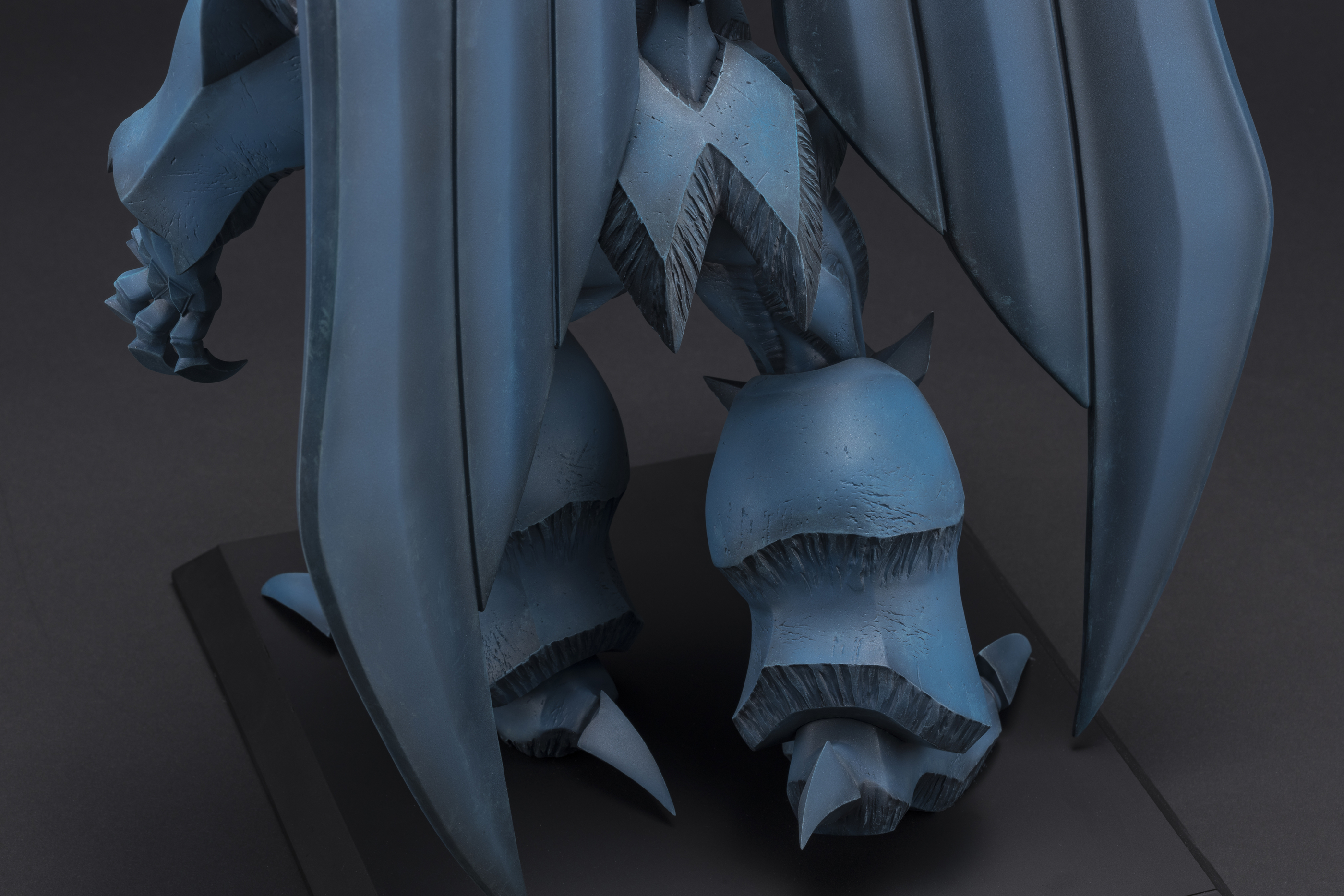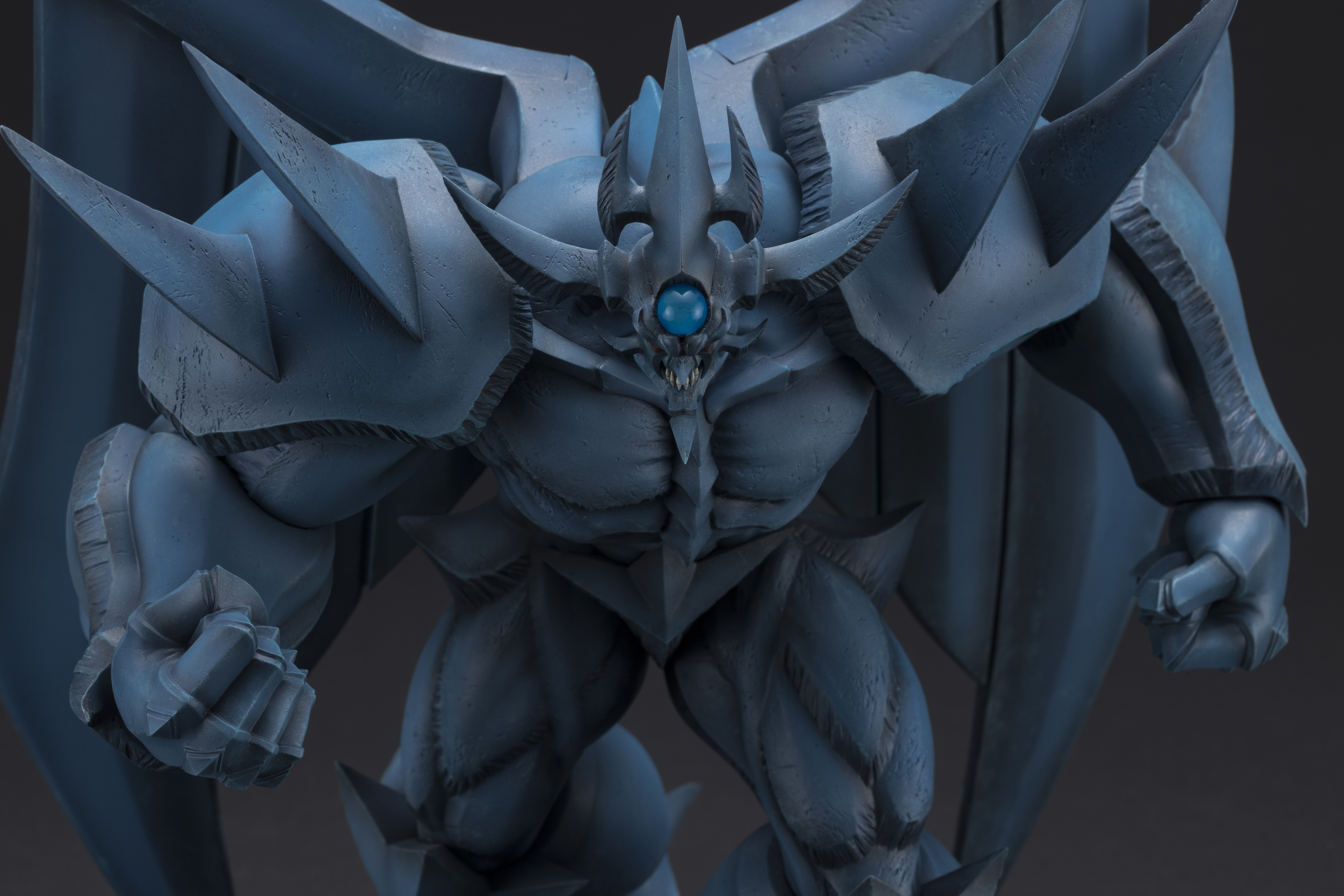 From the fierce expression befitting of a god of destruction, the muscular form that looks strong enough to take down any enemy, and the sharp angles of the sculpt that highlights the scars on its form to the majestic cape-like wings, each detail of Obelisk the Tormentor is thoroughly recreated.